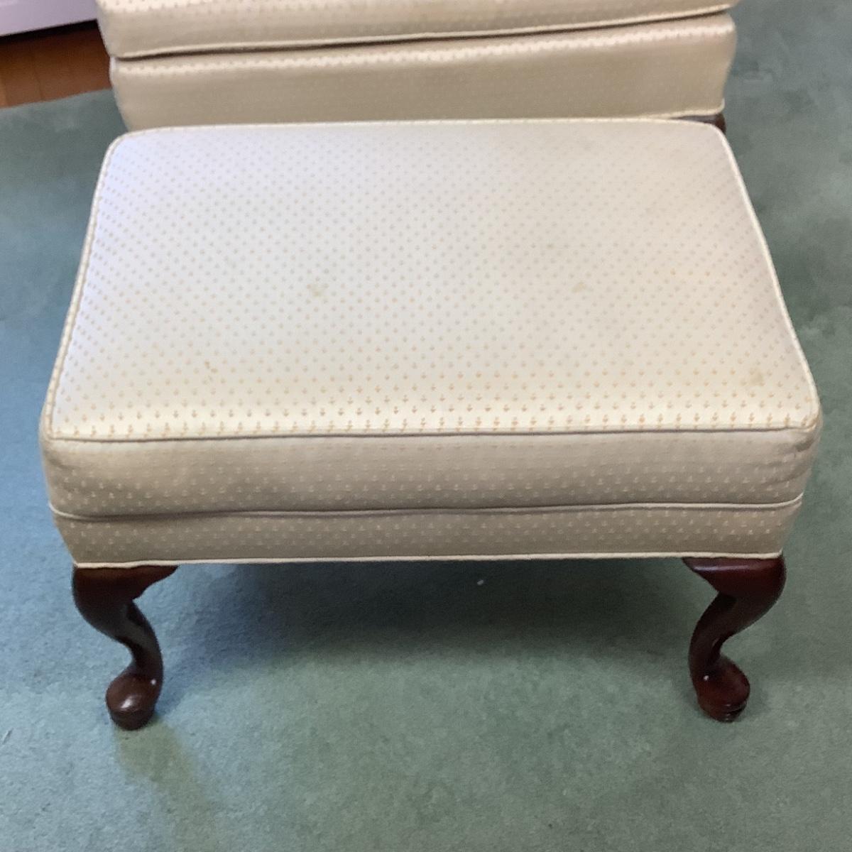L1027 Vintage Upholstered Ethan Allen Wingback Chair and Ottoman