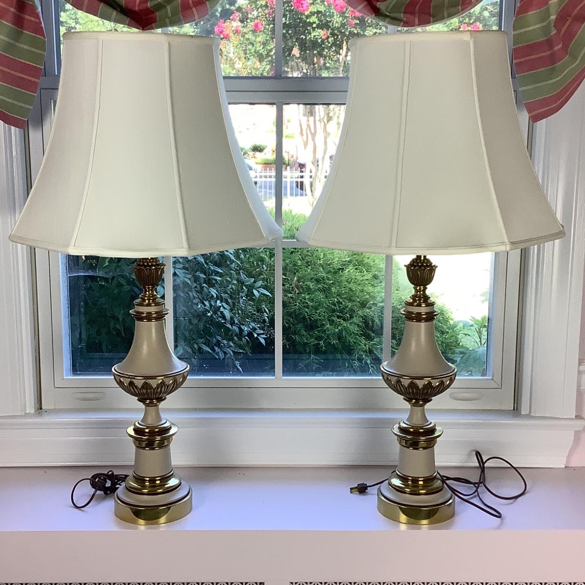 L1029 Pair of Vintage Brass & Cream Stiffel Lamps