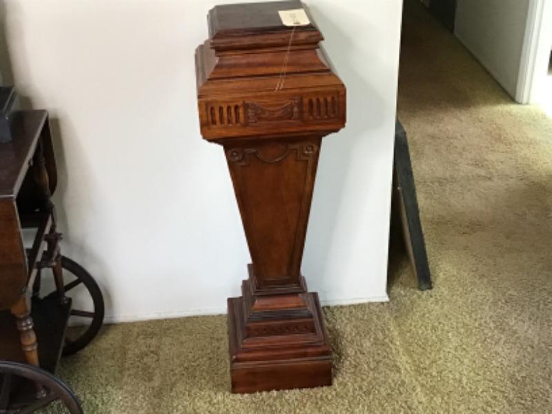Arts and crafts wooden pedestal measures approximately 12“ x 12“ x 36“ high