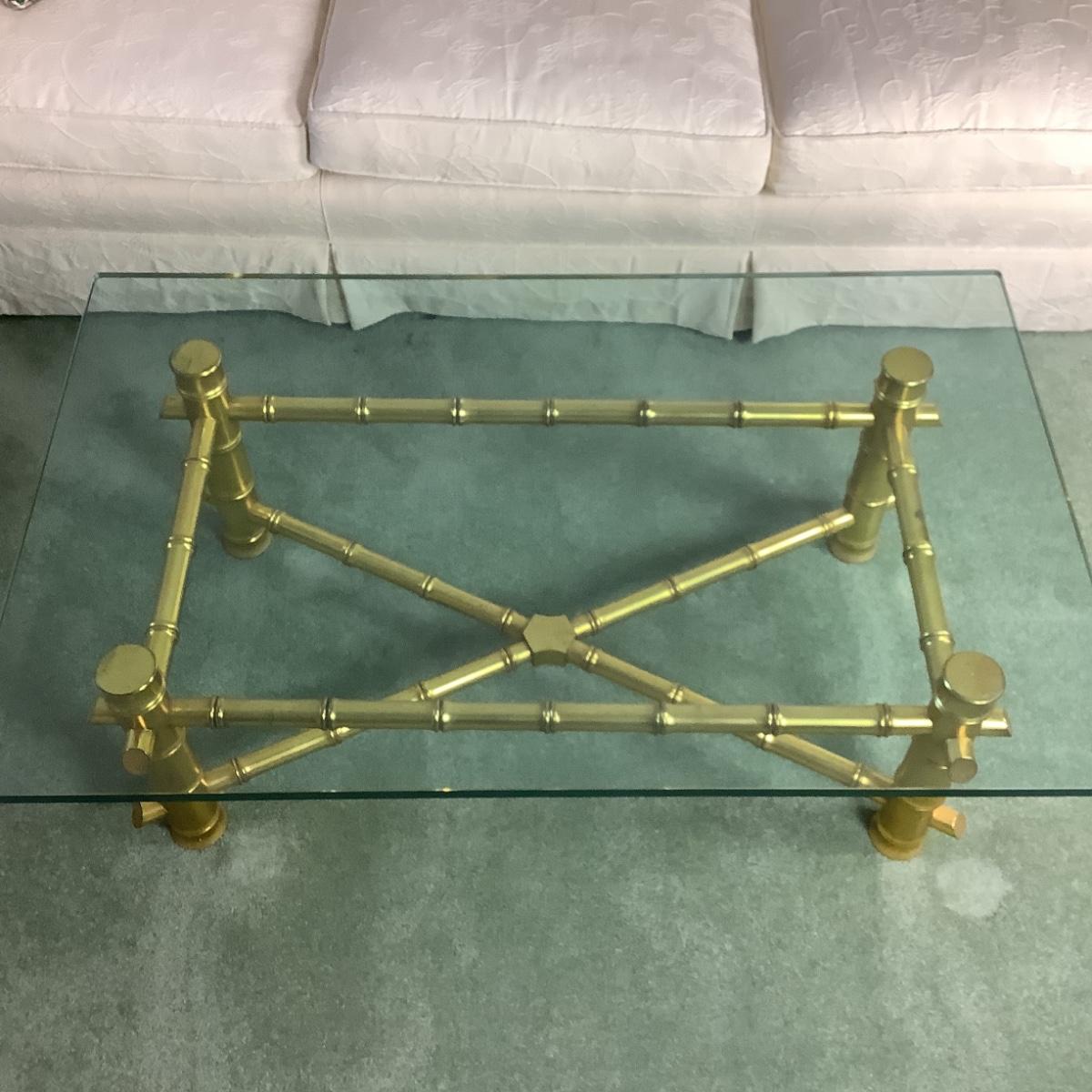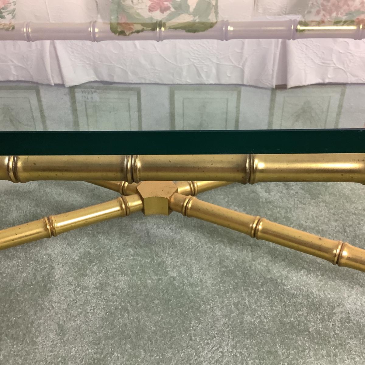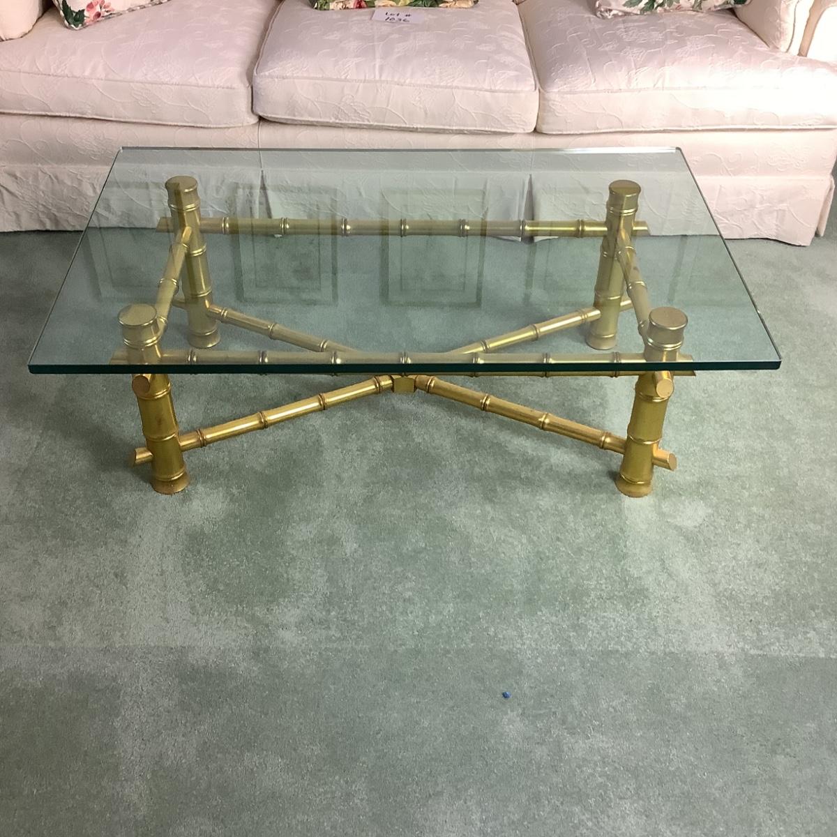 L1038 Vintage Gold Bamboo Style Glass Top Coffee Table