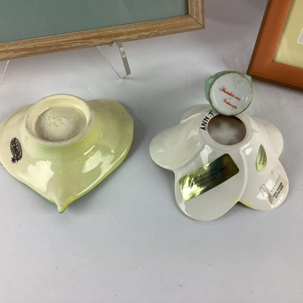 Two floral pottery bowls and perfume bottle all made in Hawaii
