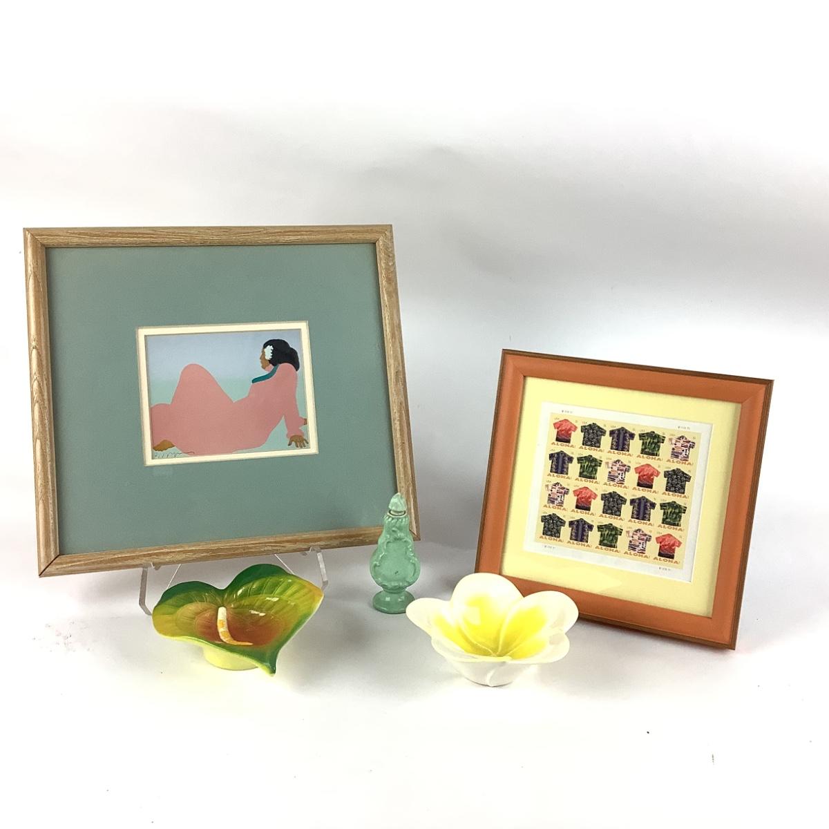 L1072 Hawaiian Art and Decor Lot with Peggy Hopper , Aloha Shirt Stamps