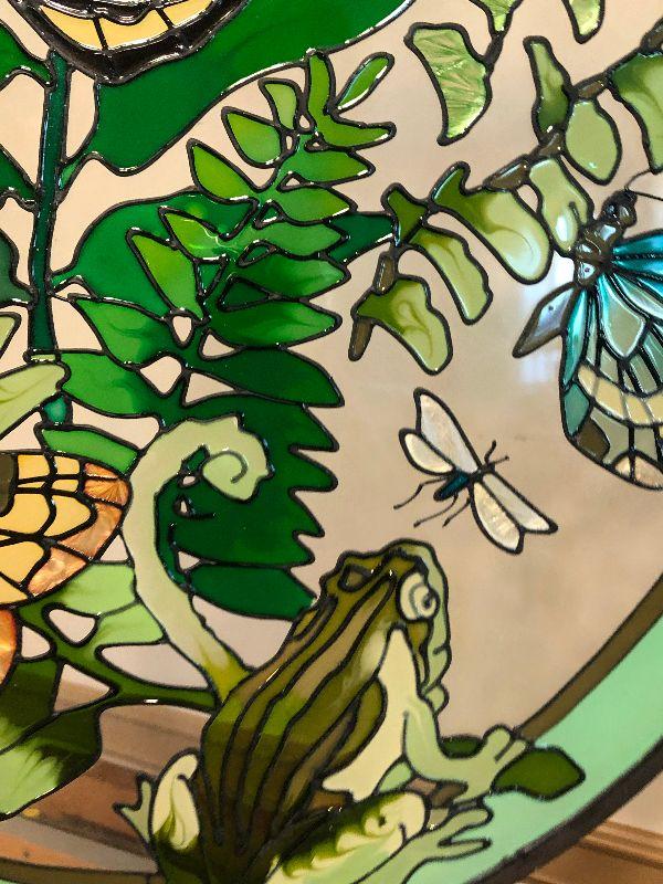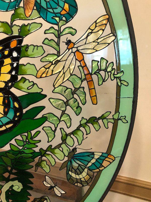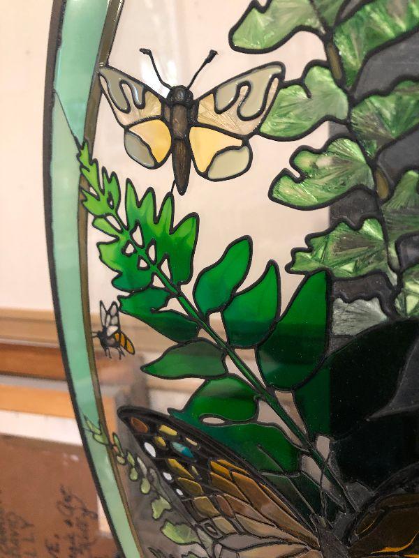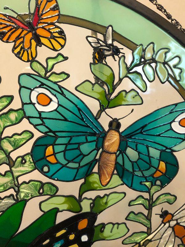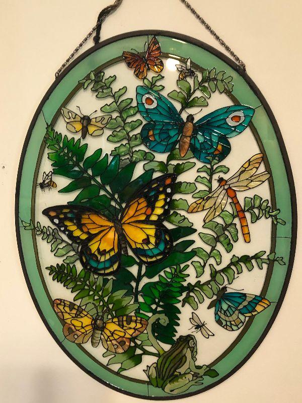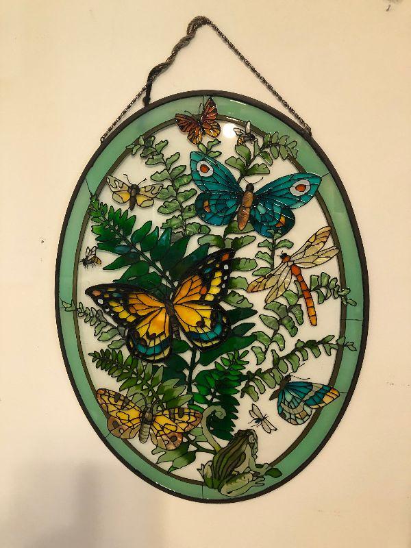 This is very pretty and styled like a Stained Glass piece, but not glass. Very unique and perfect for wall or window! Pictures say it best! Please see all pictures for exactly what is in the lot, the condition of the item/s, and the measurements if needed. Thank you for looking and have fun bidding!