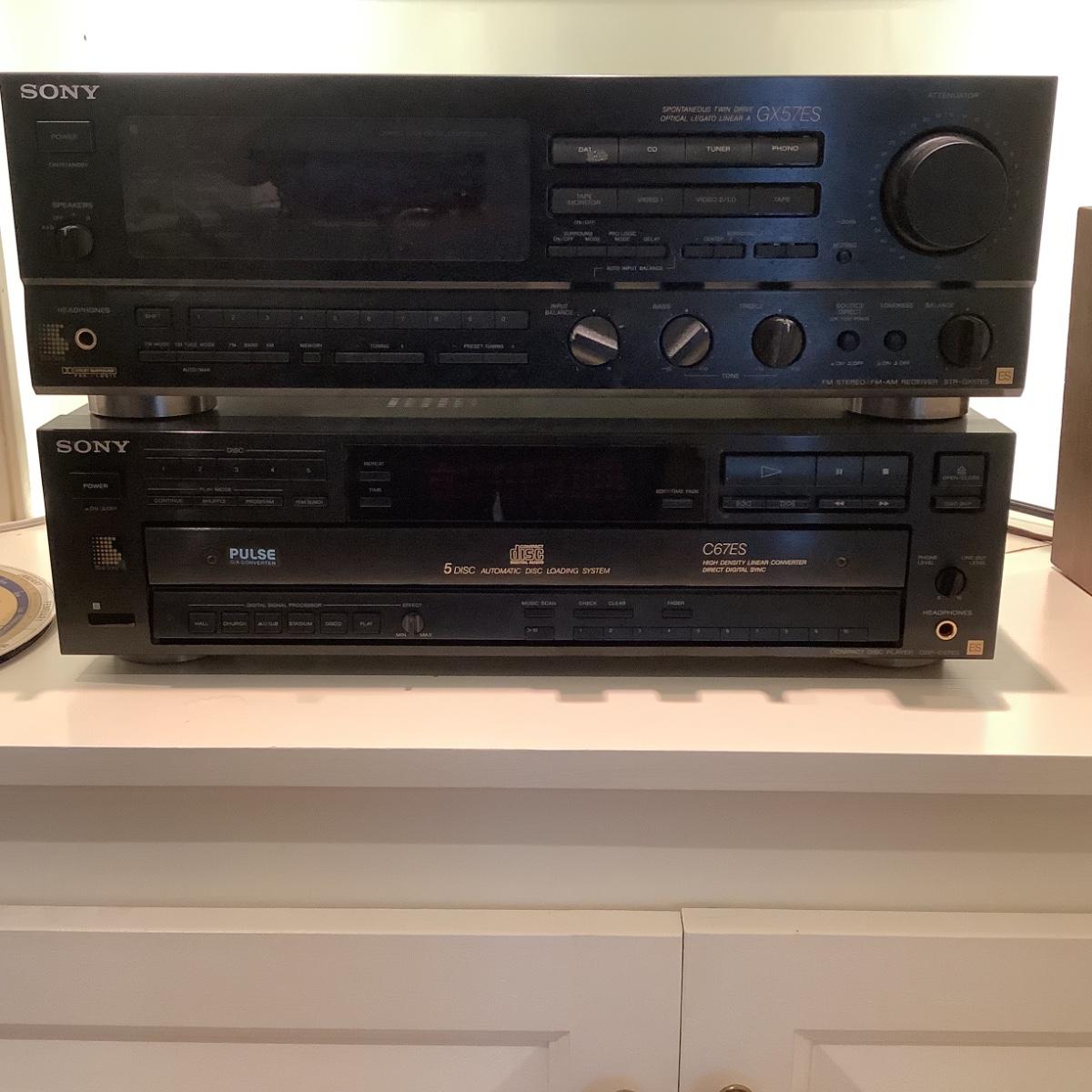 L1080 Sony Stereo Receiver and 5 Disc CD Player with Pair of Parasound Speakers