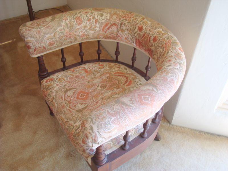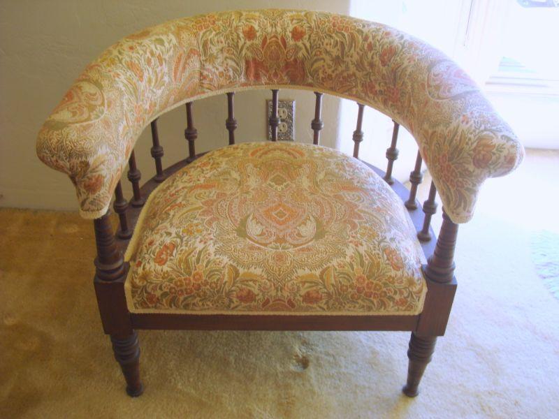 L111 - Barrel Back Arm Chair with Ornate Fabric (#1)