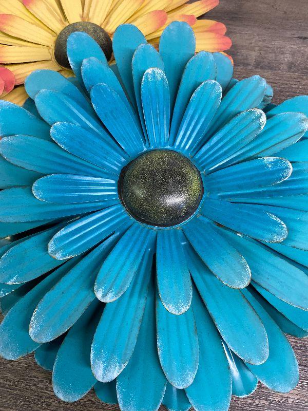 Large Metal Flowers that can hang on wall, fence, or barn! Please see all pictures for condition and measurements if taken. All items are sold as found and if furniture, you will need to be able to move yourself. Thank you for looking and have fun bidding! As always, thank you for being a Treasure Me Hunter!