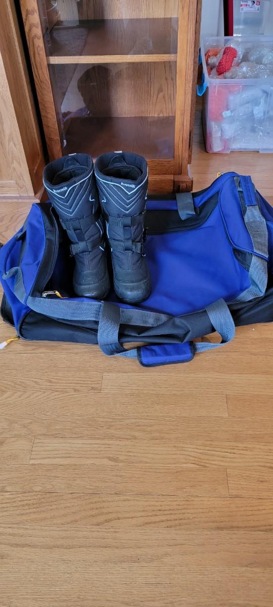 L-112 Blue Jeep duffle bag and Kamit boots USA 7