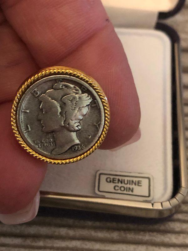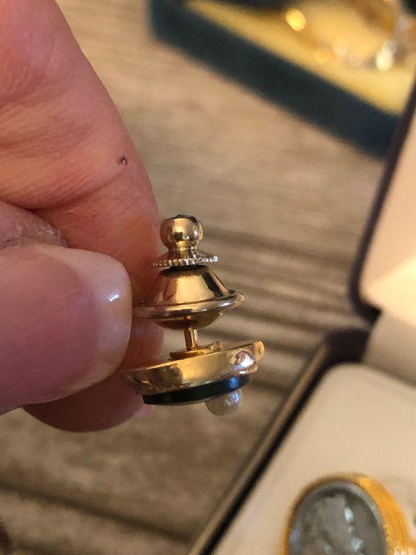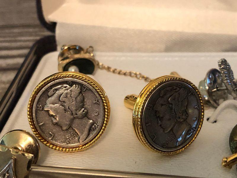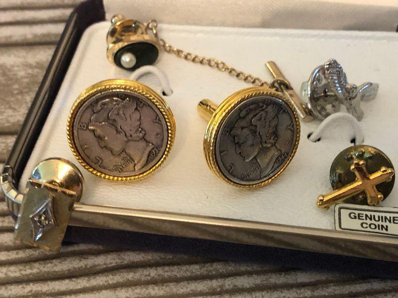 Men's genuine coin cufflinks by Swank. Various tie tacs and men's pins.