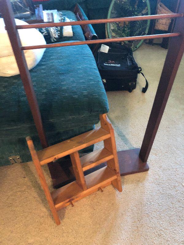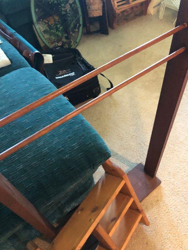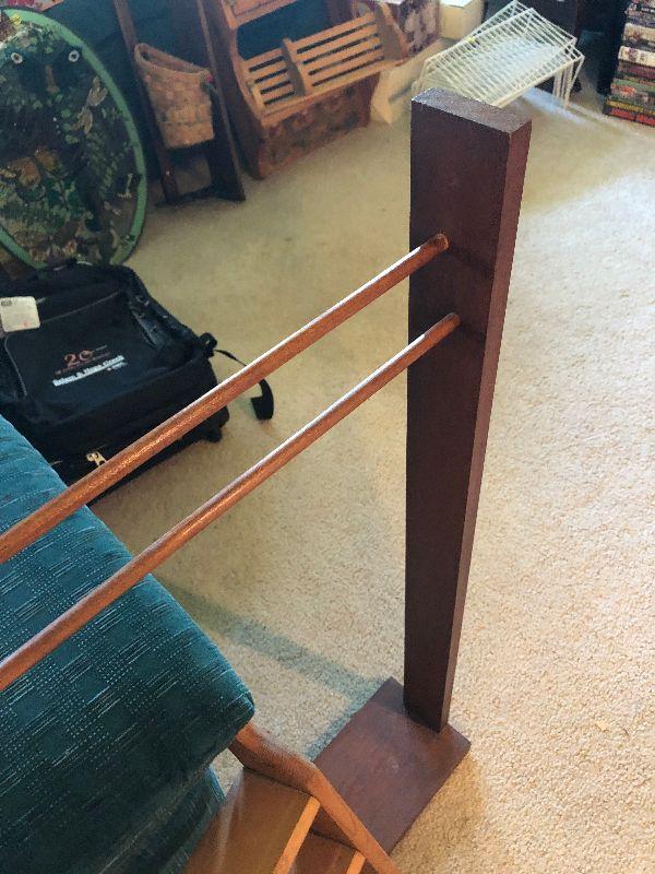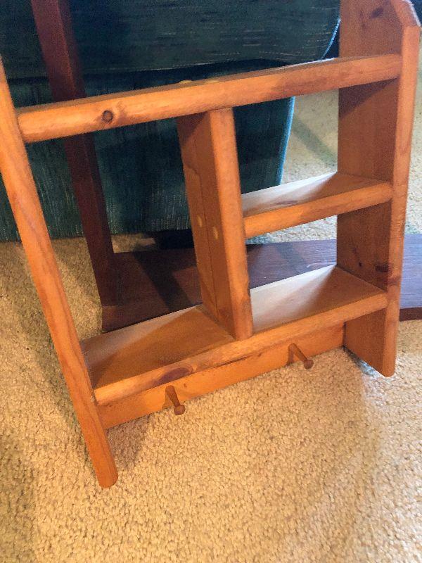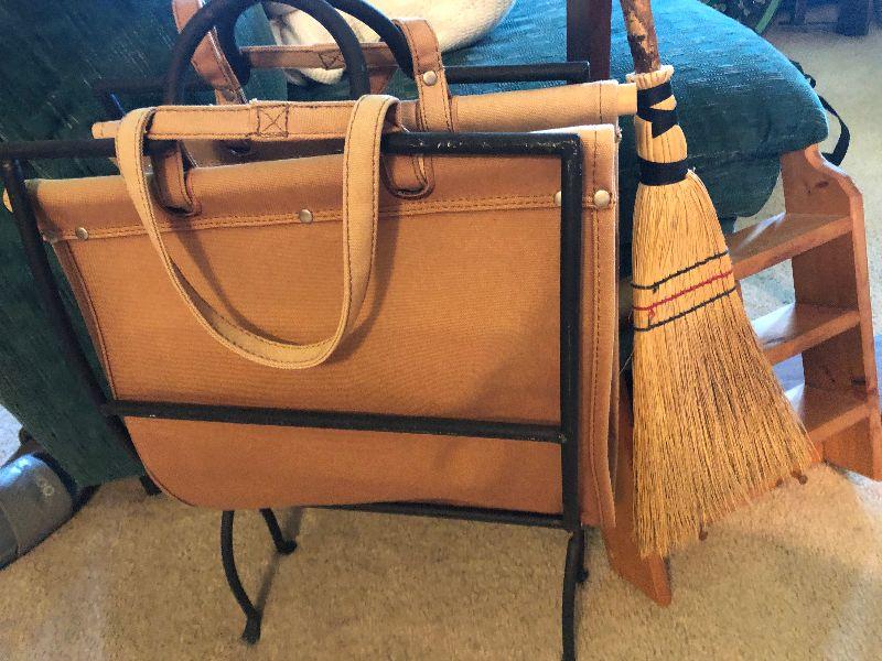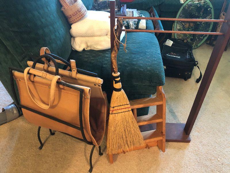Firewood Rack, turned wood broom, small shelf, and towel/throw rack! Pictures say it best! Please see all pictures for exactly what is in the lot, the condition of the item/s, and the measurements if needed. Thank you for looking and have fun bidding!