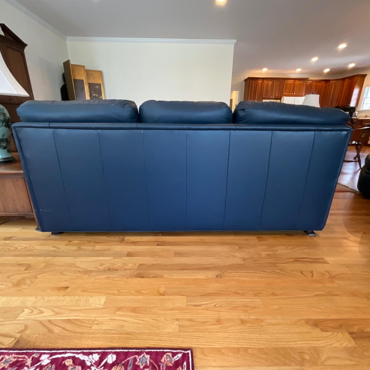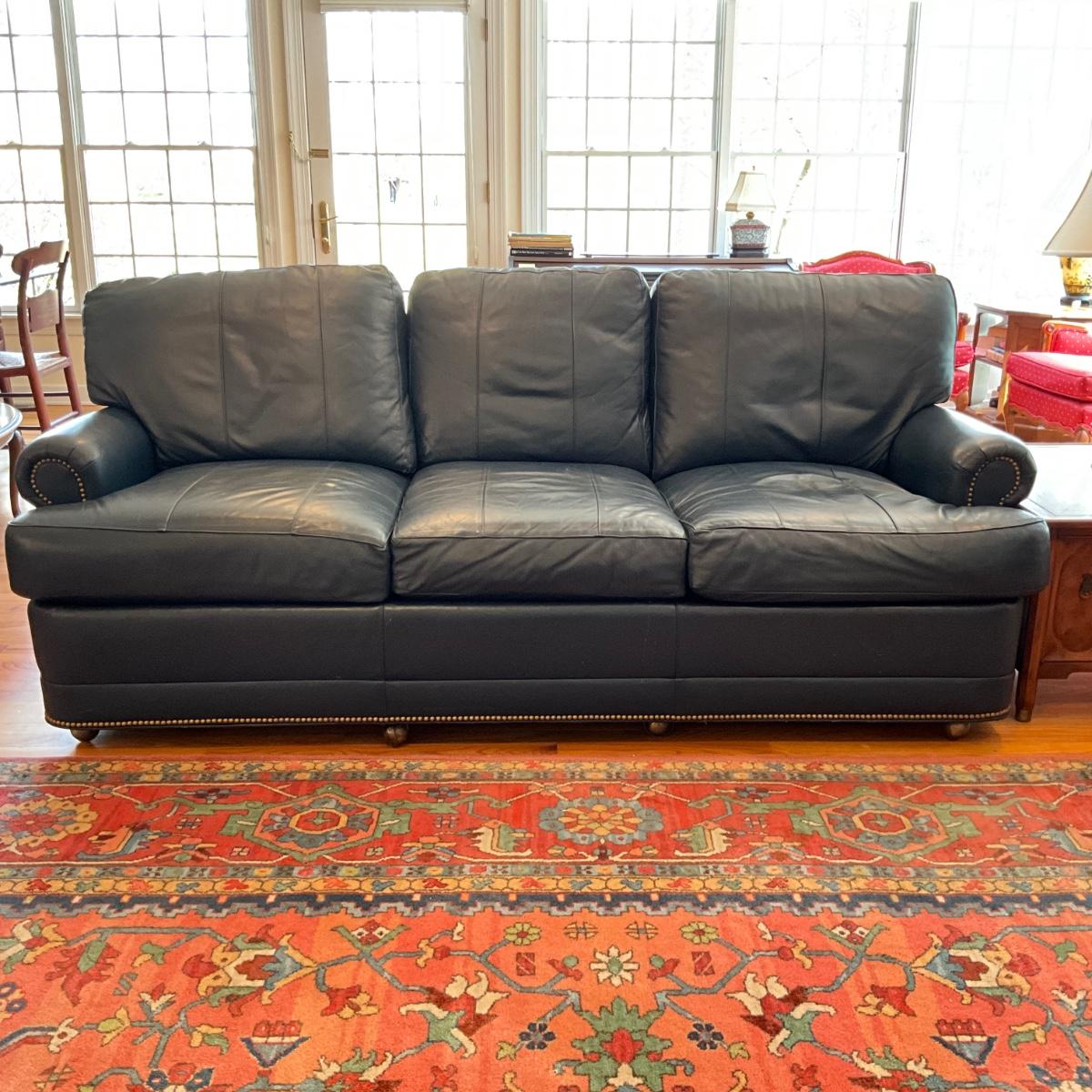 L1179 Hancock & Moore Navy Blue 3-Cushion Leather Sofa
