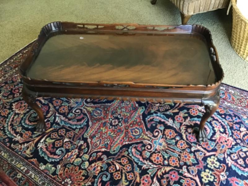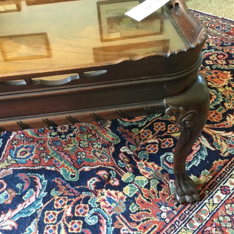 L-118 antique pie crust style coffee table, clawfoot and heavily carved