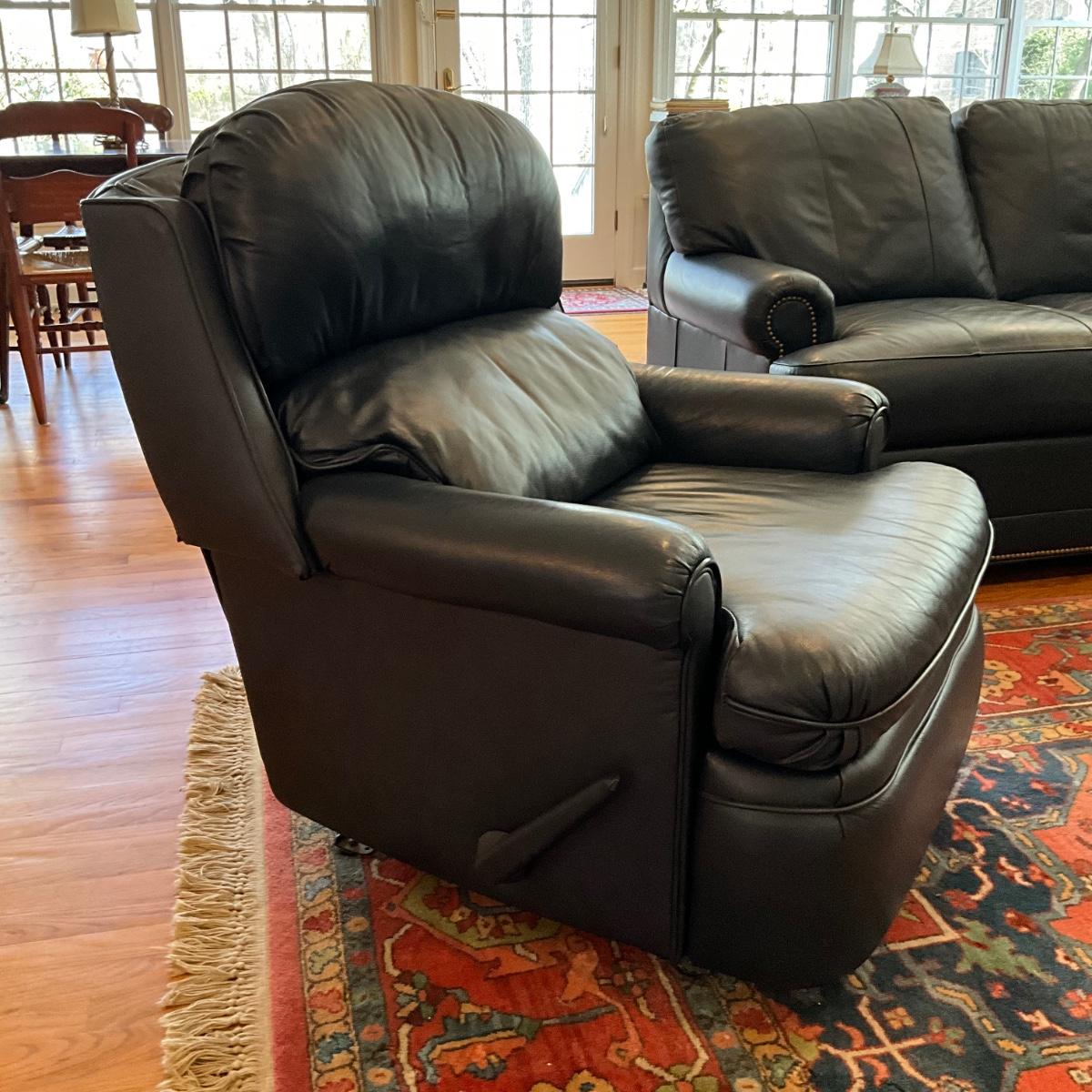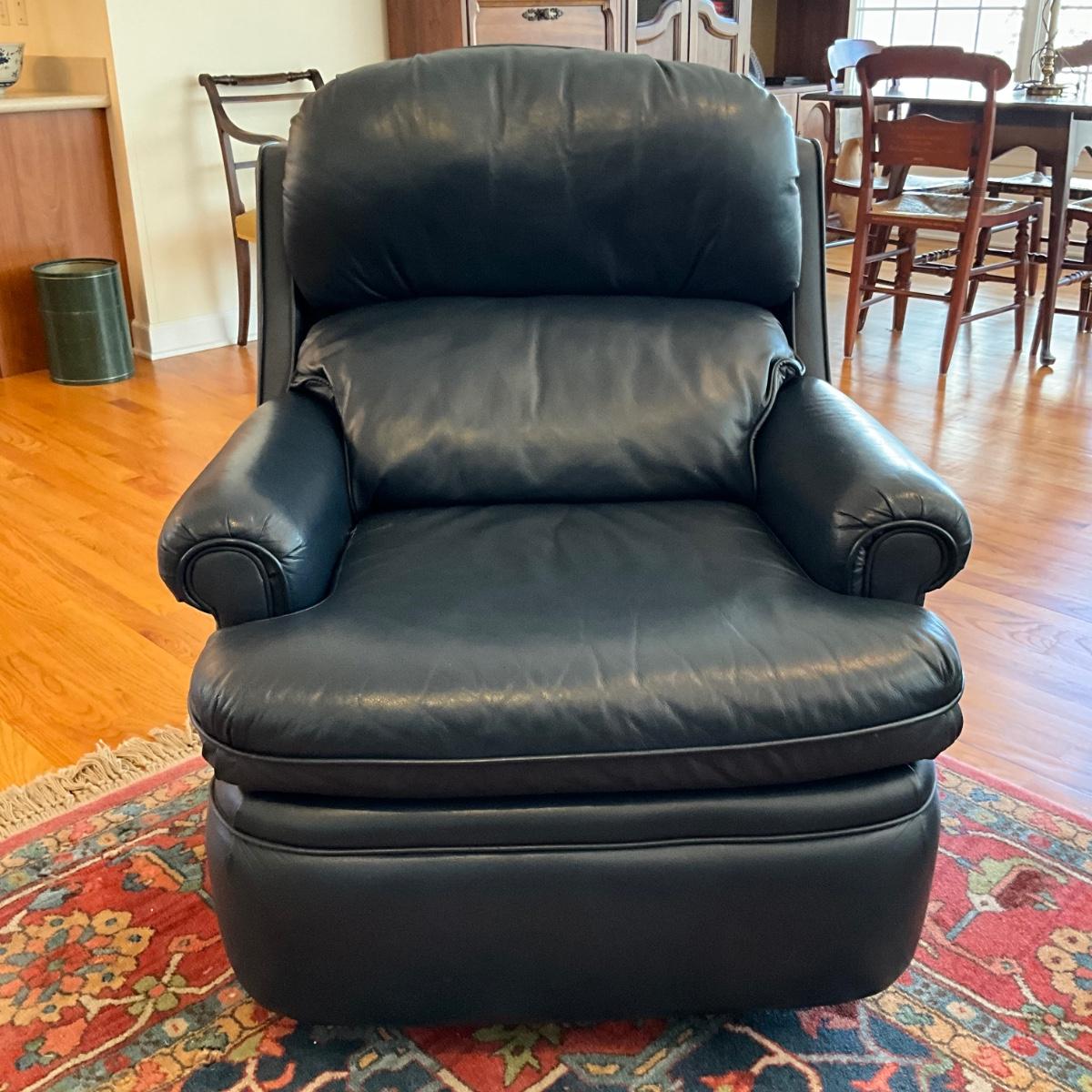 L1180 Barcalounger Navy Blue Leather Recliner Chair
