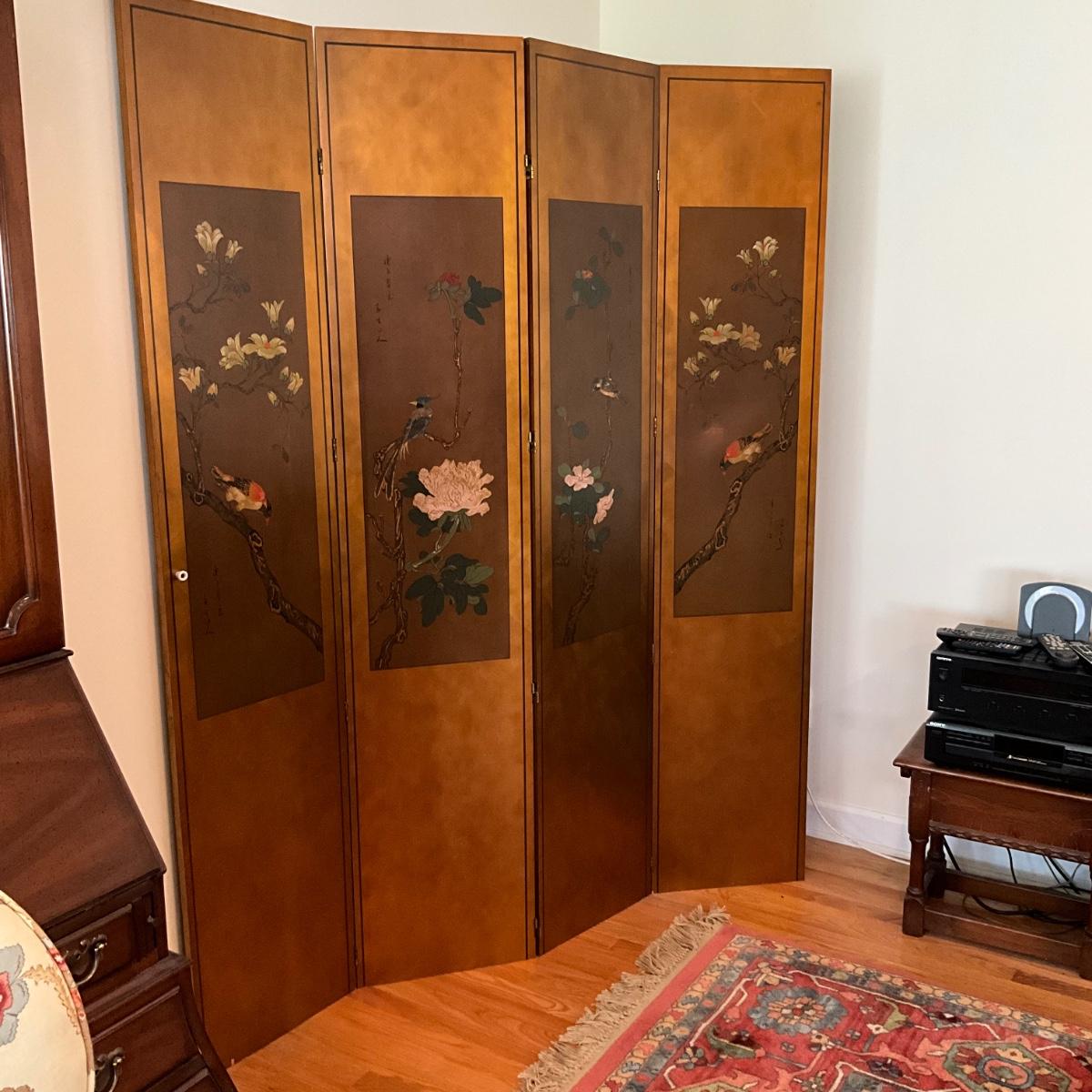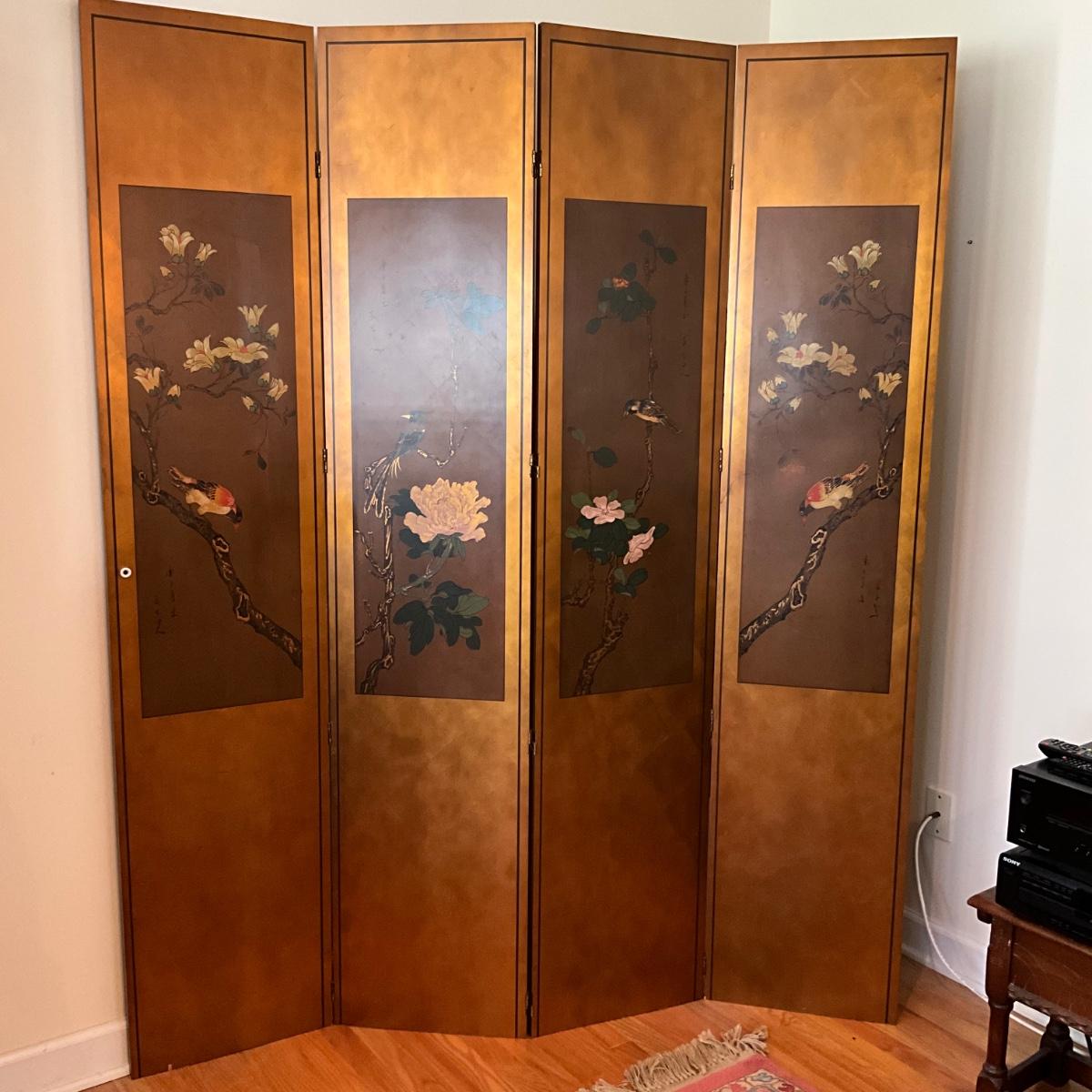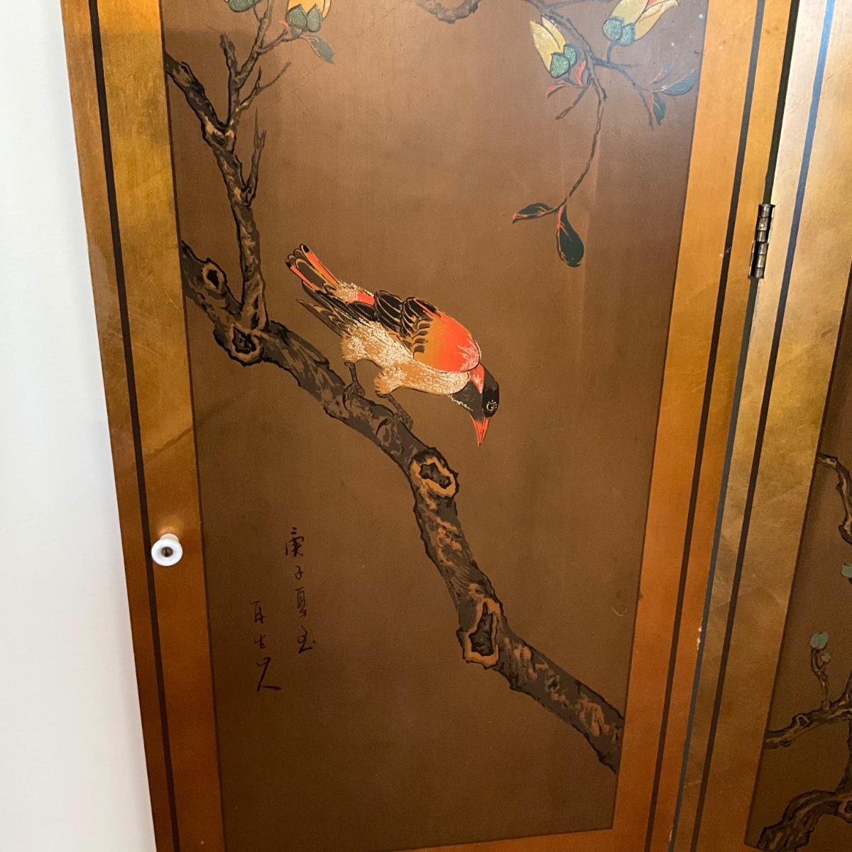 L1183 4-Panel Oriental Bird Screen