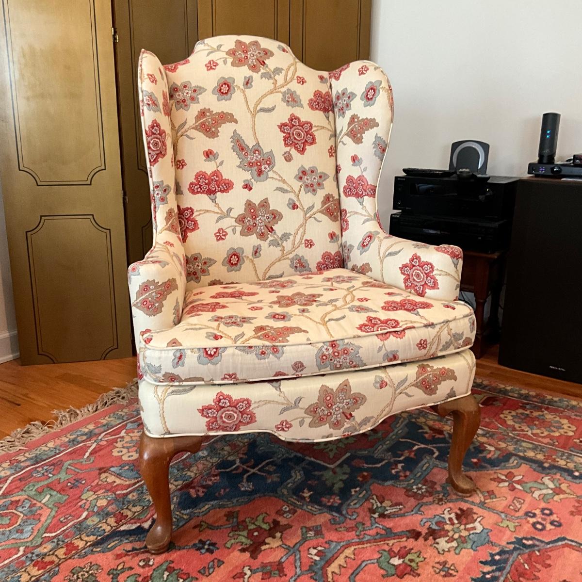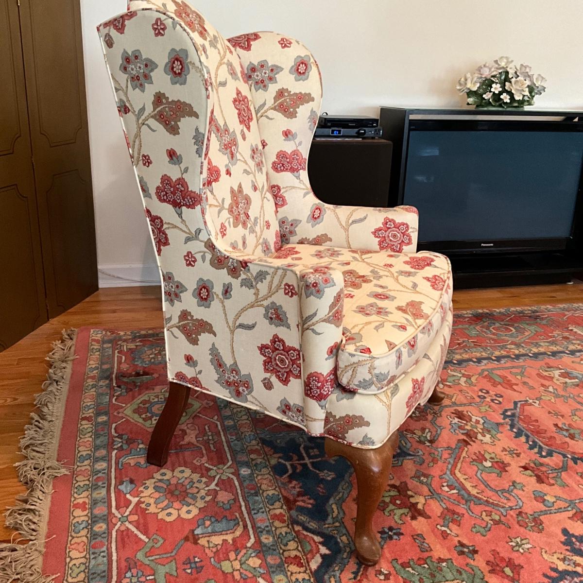 L1184 Custom Upholstered Floral Wingback Chair