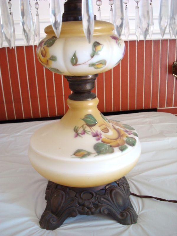 L119 - Antique Hand Painted Oil to Electric Table Lamp