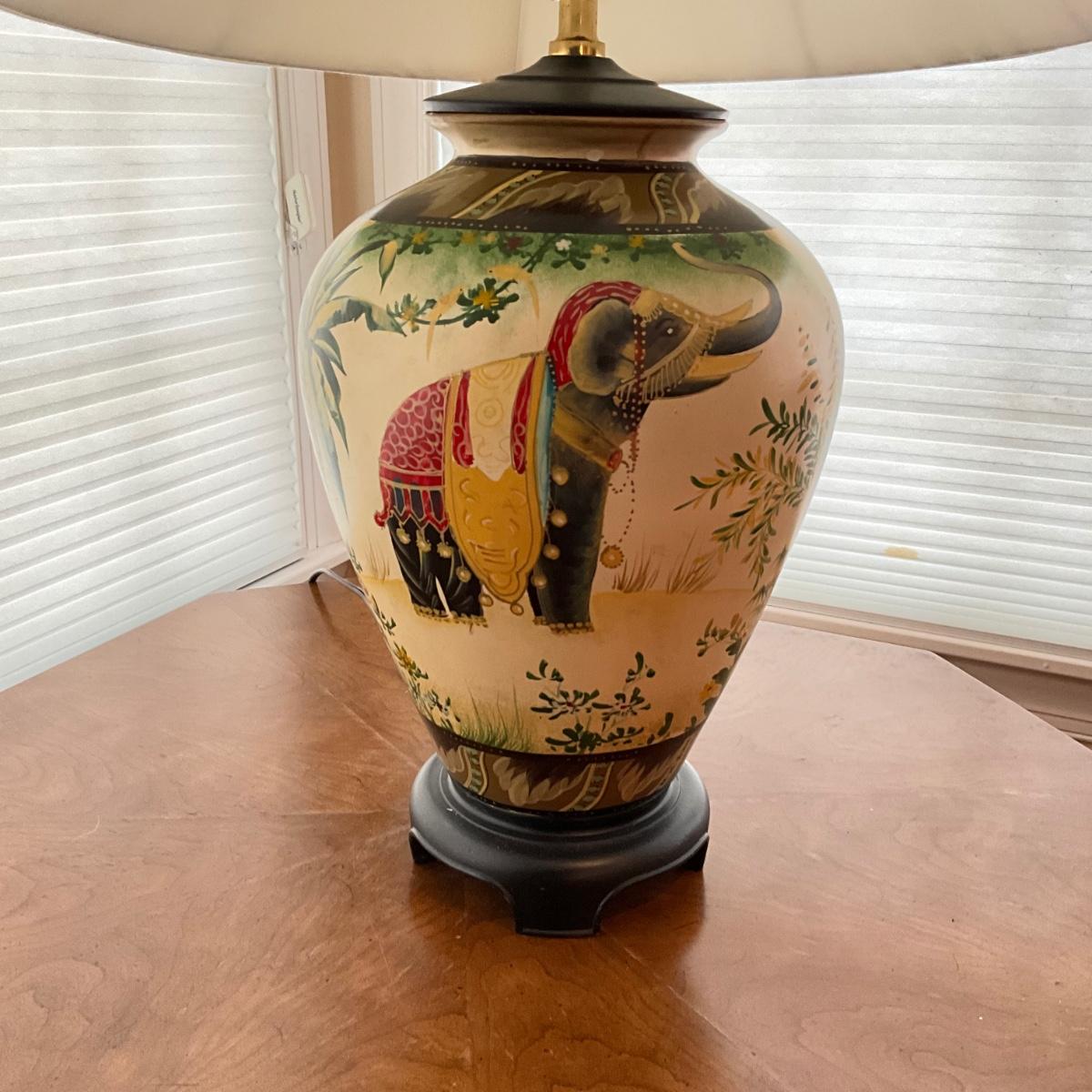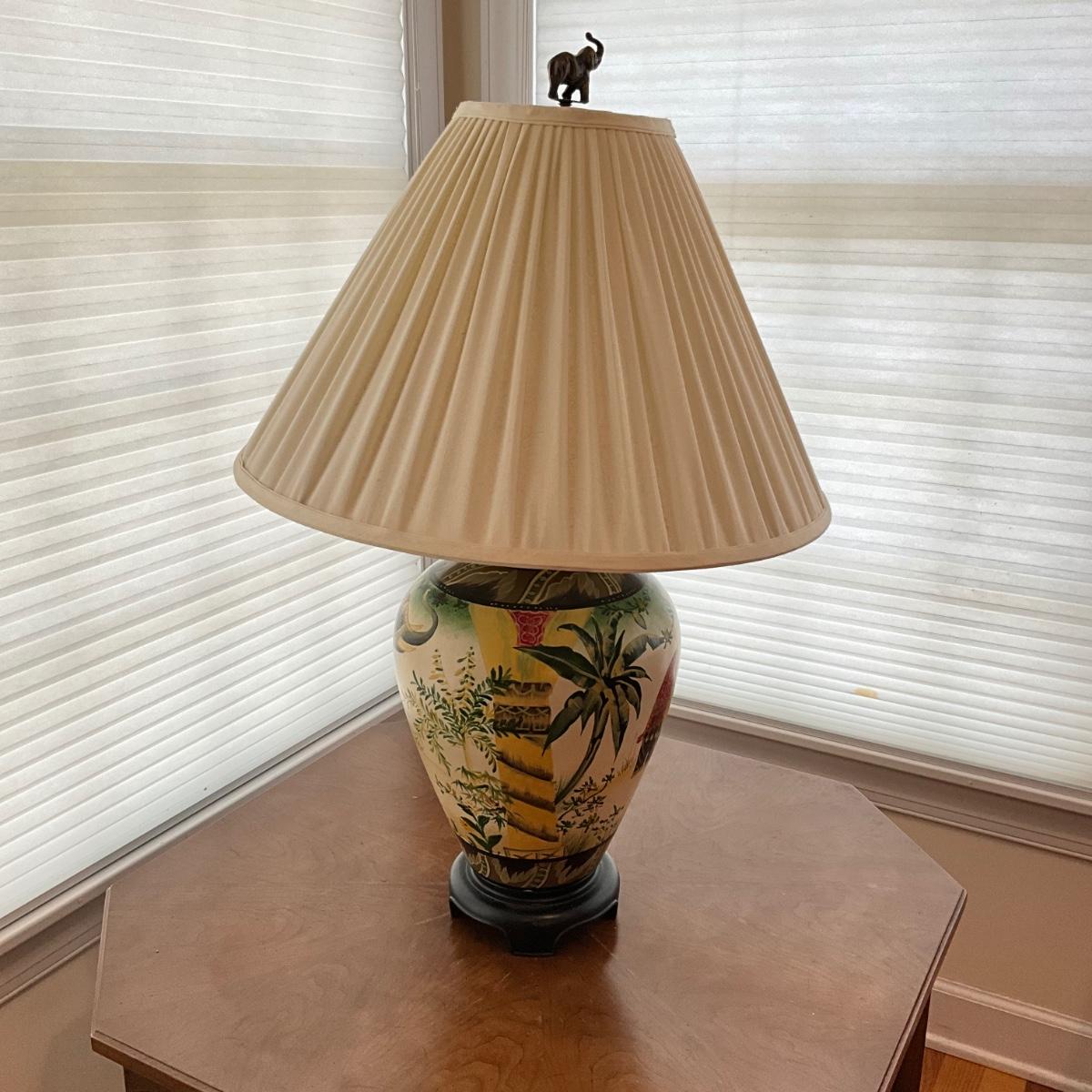 L1198 Porcelain Palm Tree Elephant Decorative Lamp