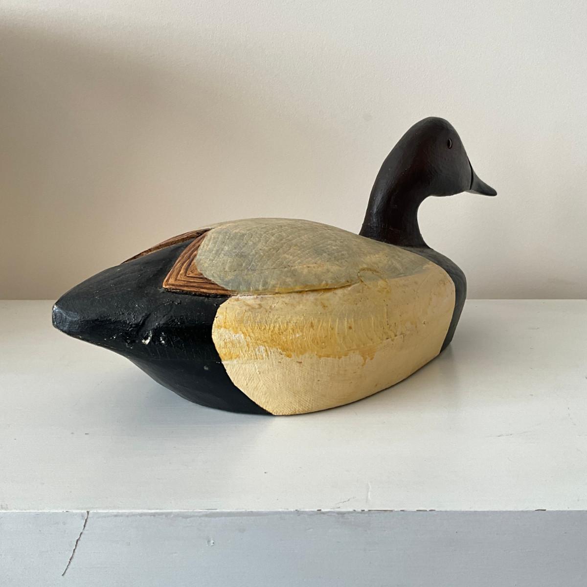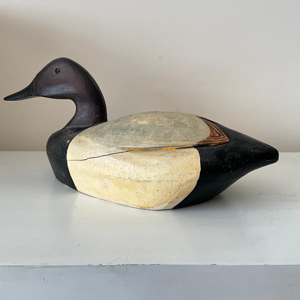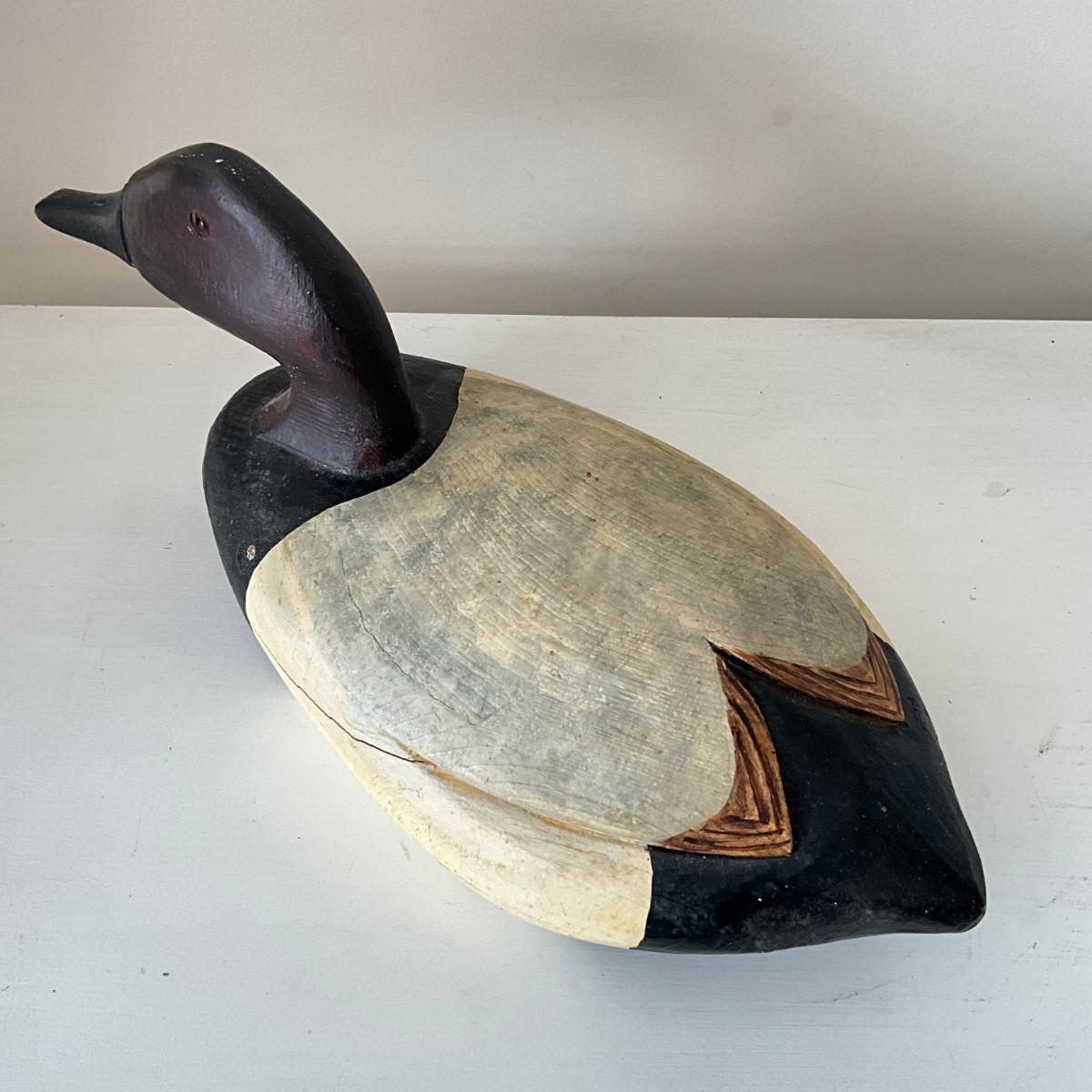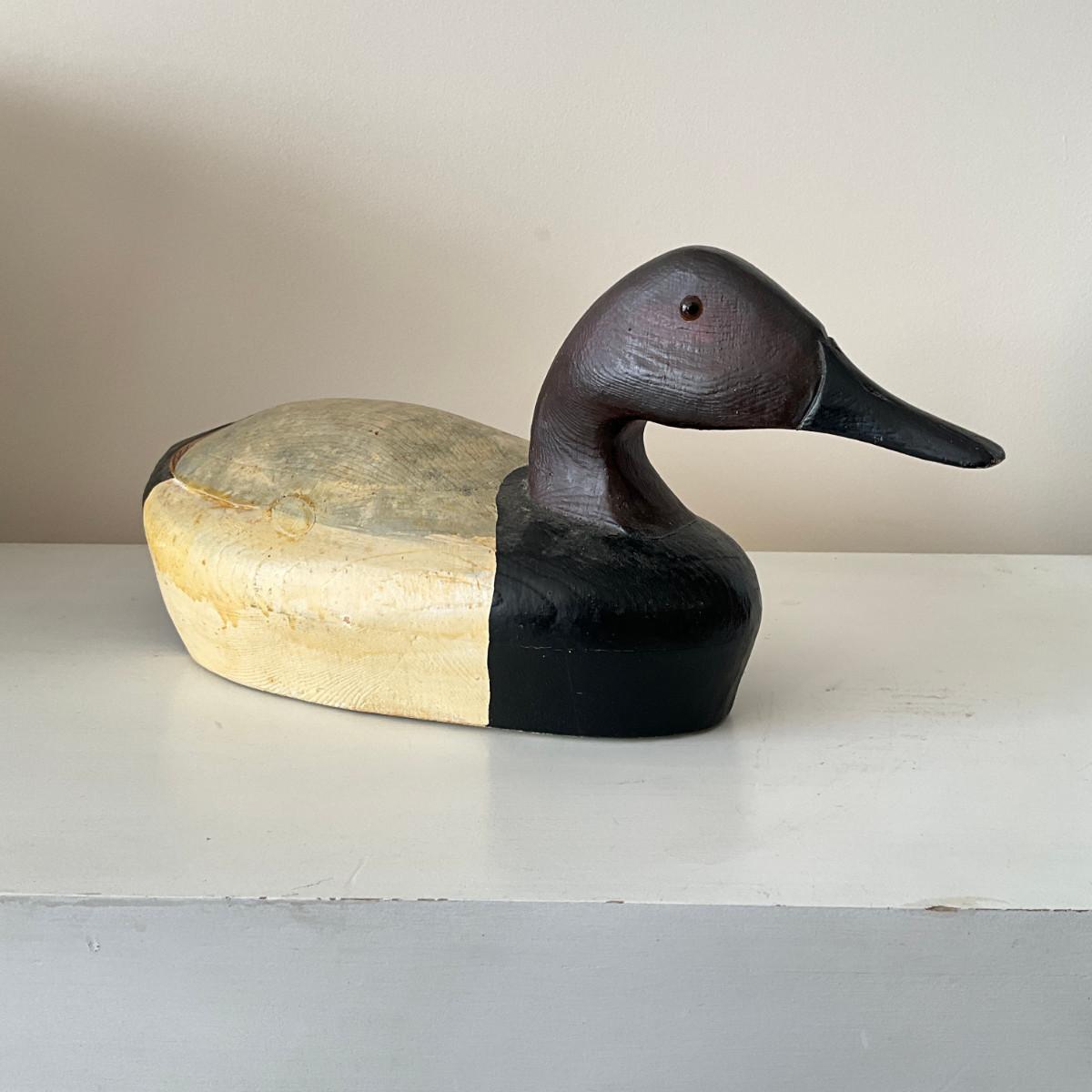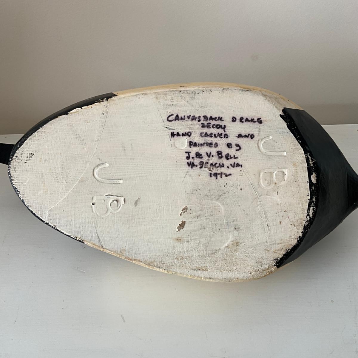 L120 Signed Wood Carved Canvas Back Drake Decoy By J&V Bell Virgina Beach 1972