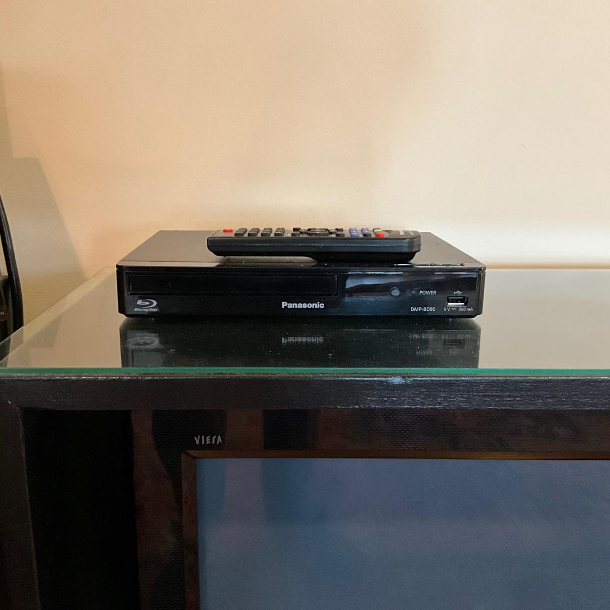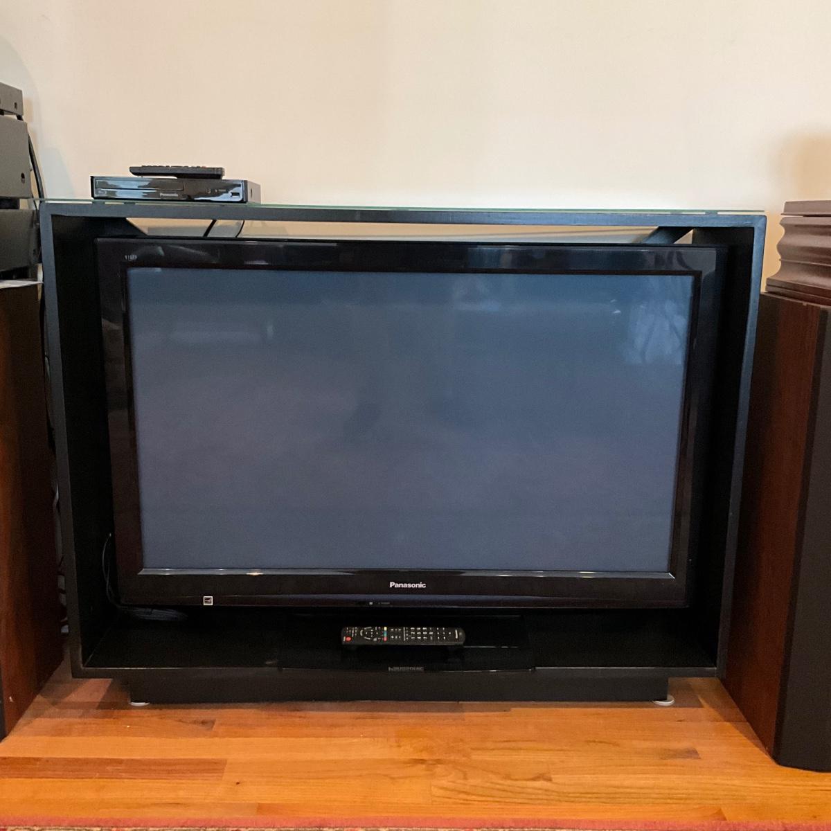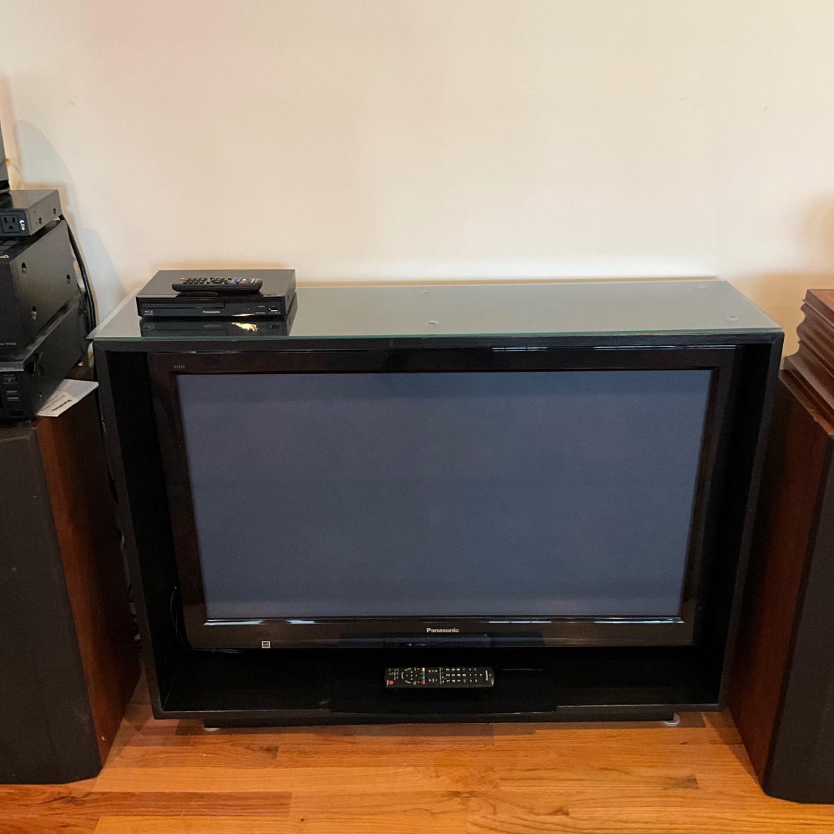 L1207 Vintage Panasonic TV with Black Stand and Blu-Ray Player