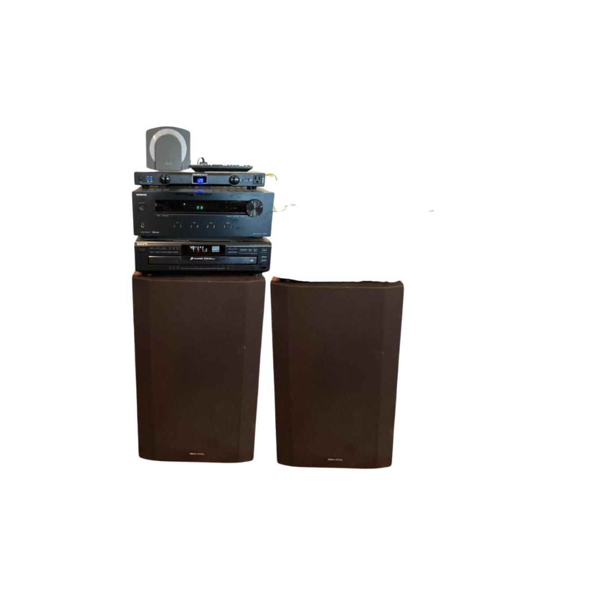 L1208 Pair of Realistic Speakers with Sony Disc Player, Onkyo Receiver, & Paramax Audio/Video Surge Protector