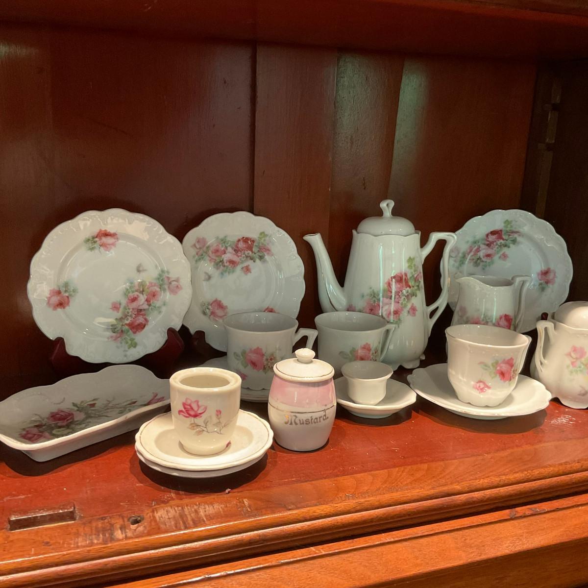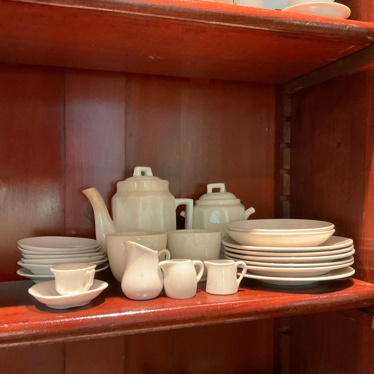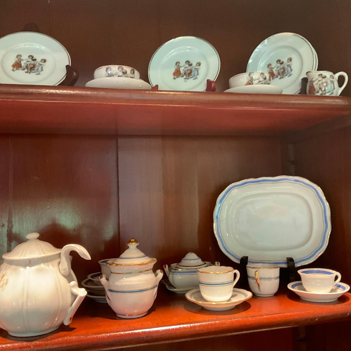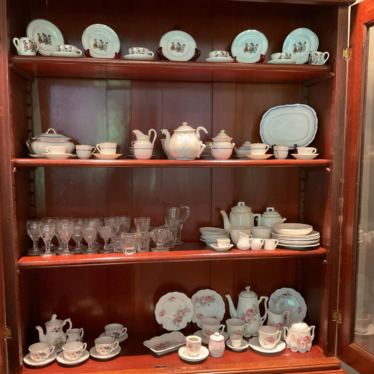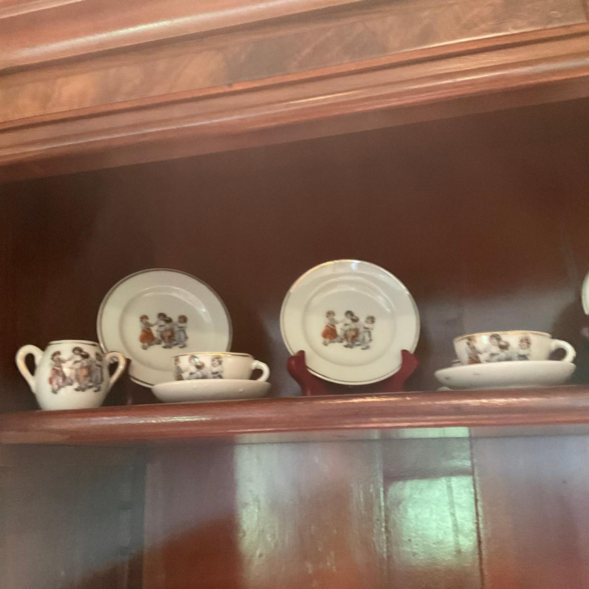 L1216 Four Shelves of Vintage Children's China Dishes