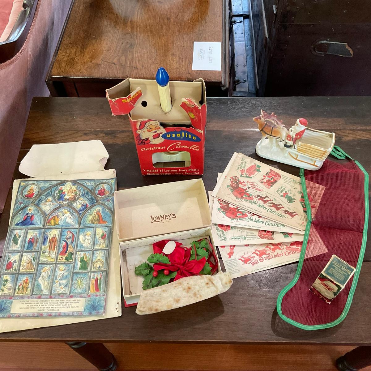Hallmark Advent, Candy Co. Paper Santa, Avon Cologne, Light