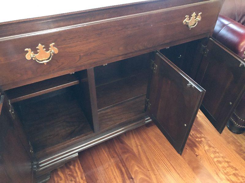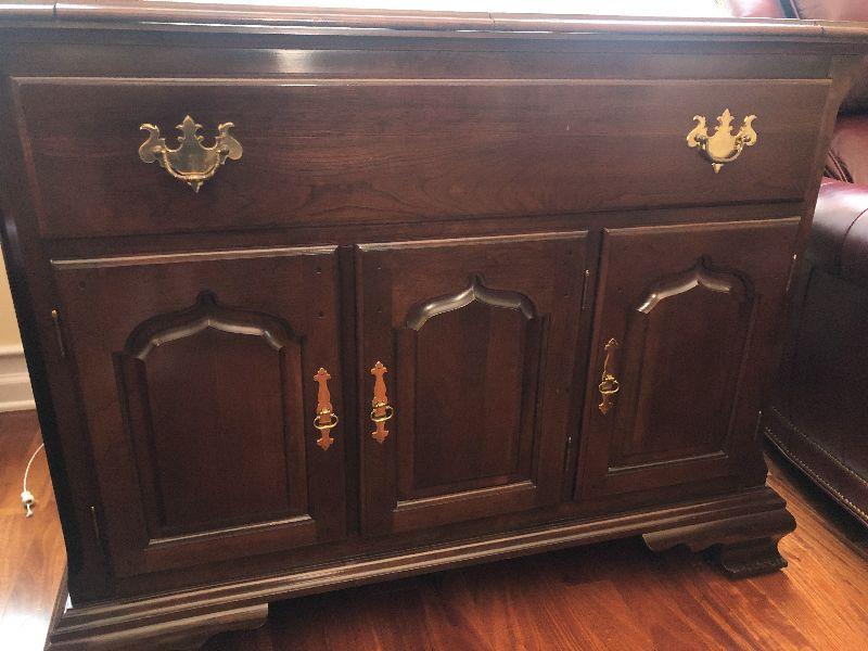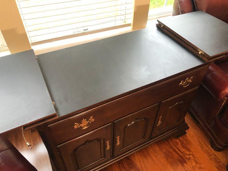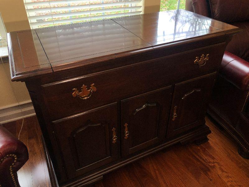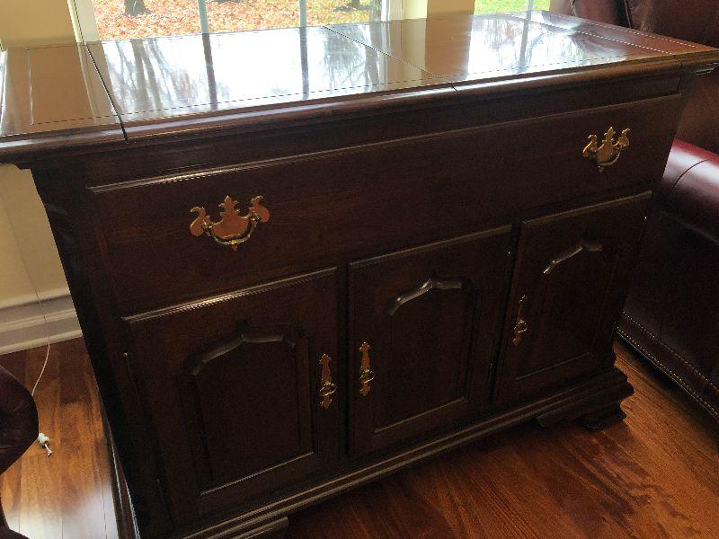 Flip top bar cart in solid cherry, very good condition. Please refer to photos for size and condition. Have fun and happy bidding.