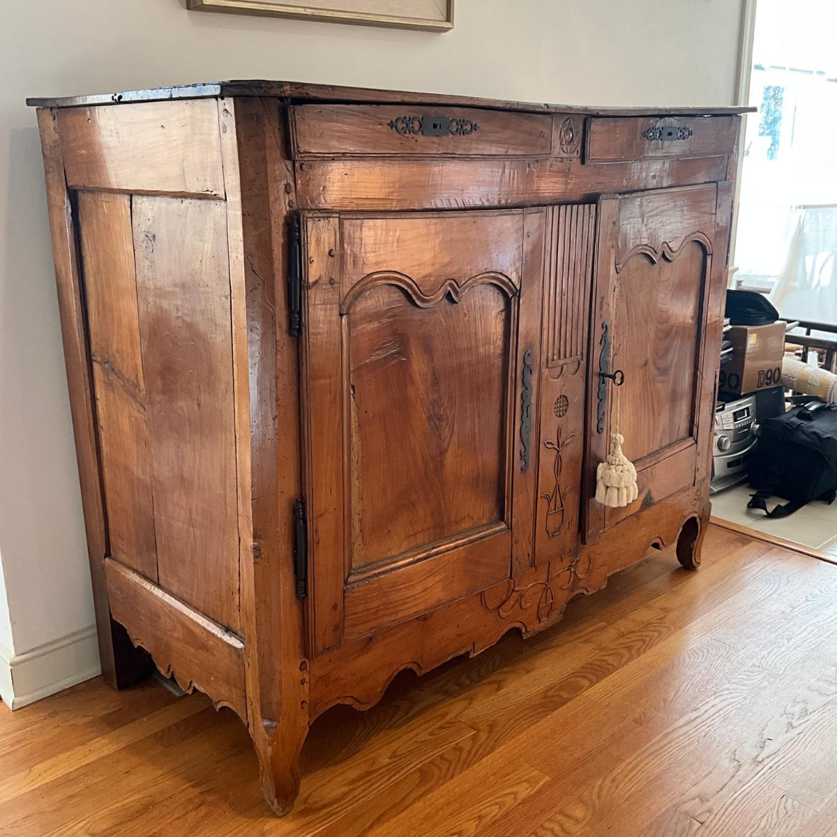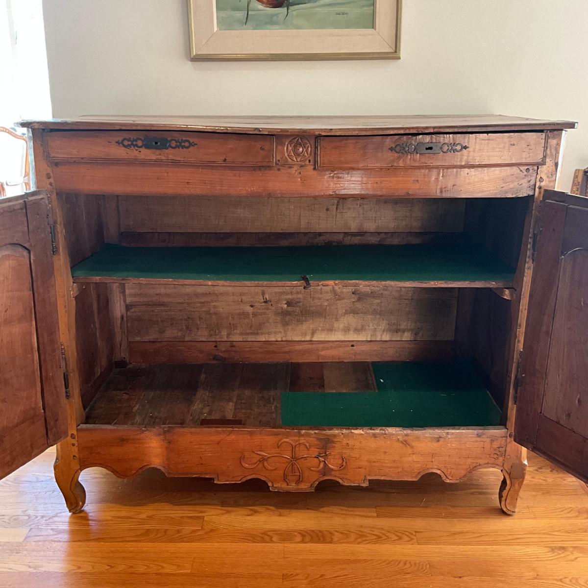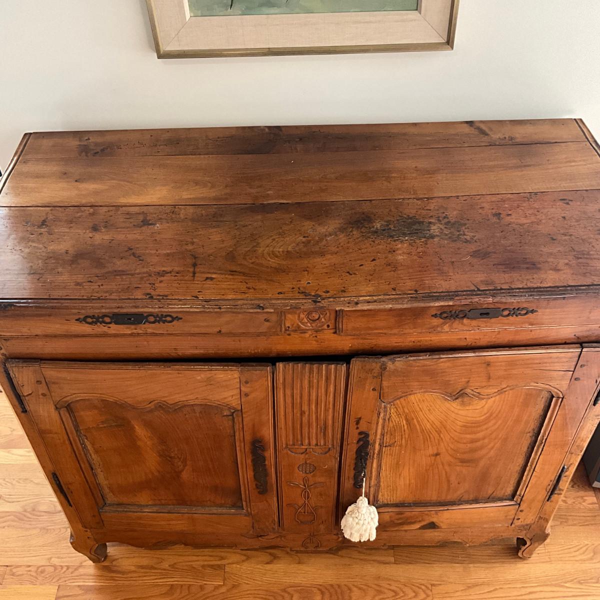 L122 Circa 1800 Country French Buffet Cherry Wood With Original Hardware And Carvings