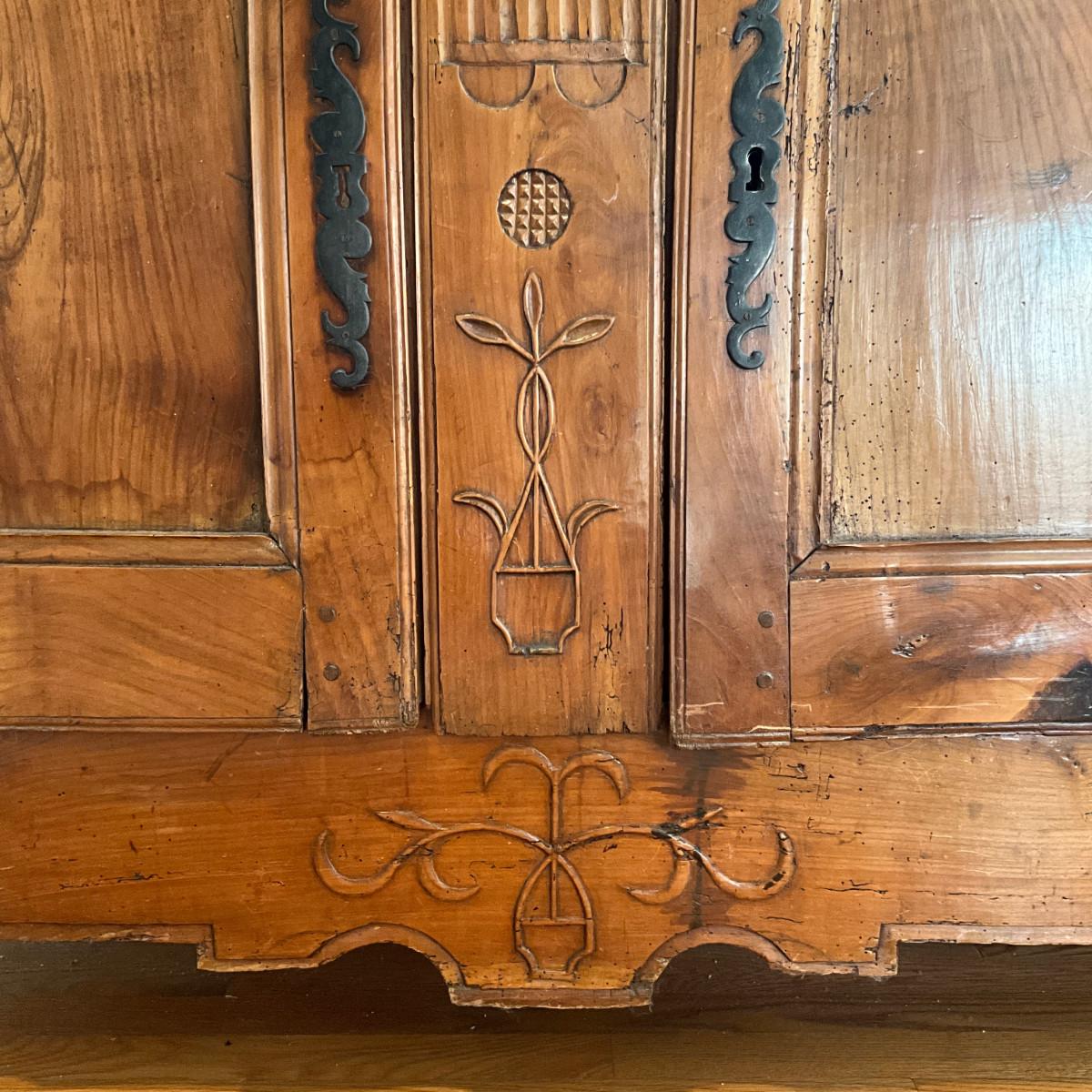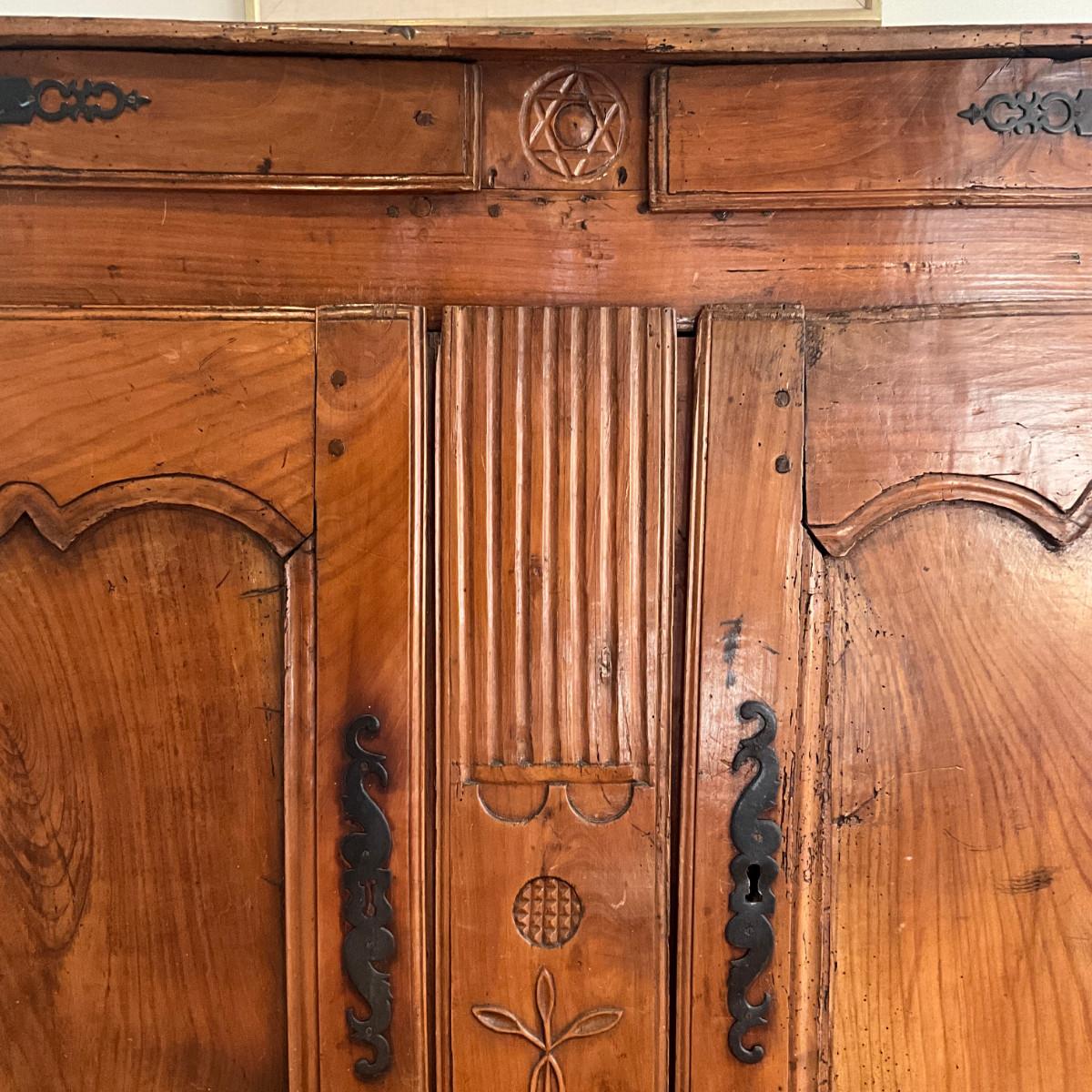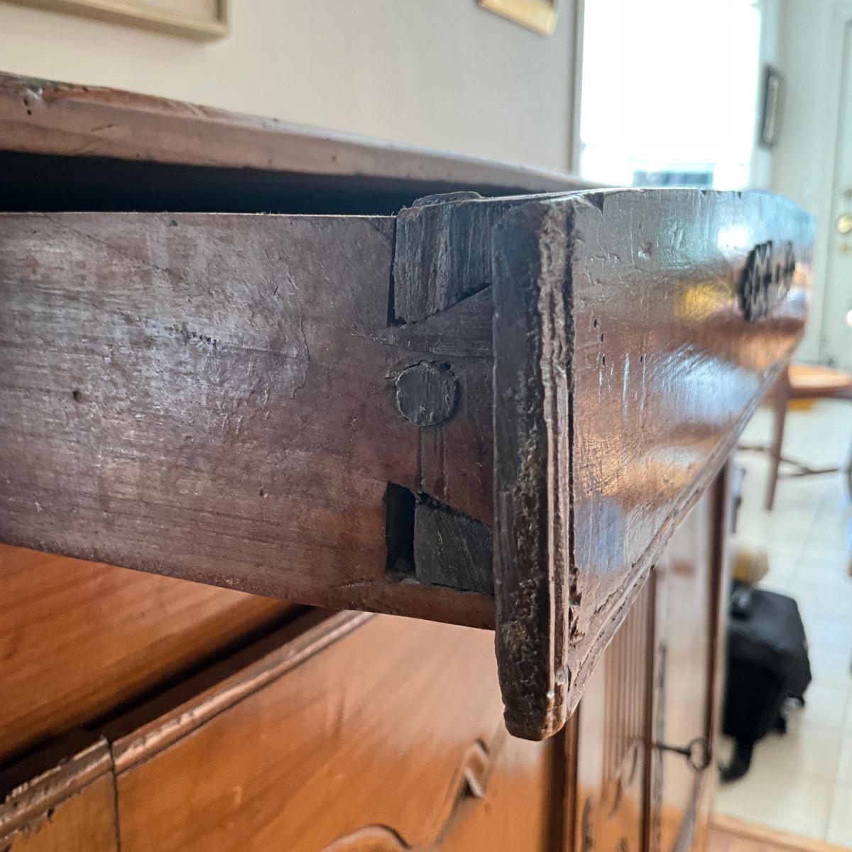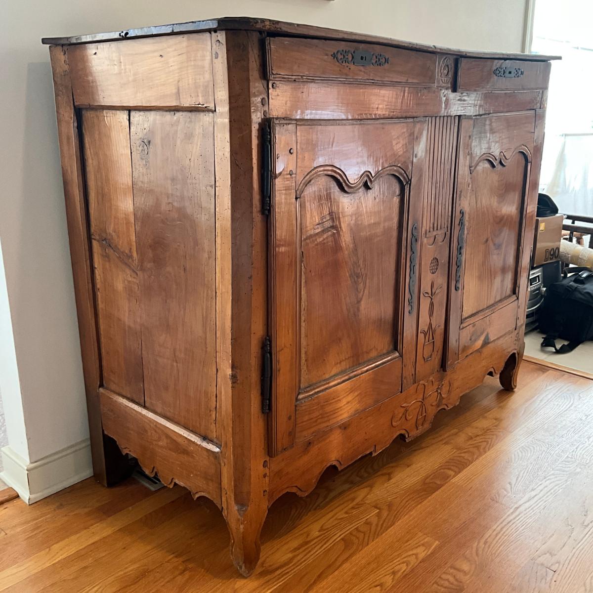 L122 Circa 1800 Country French Buffet Cherry Wood With Original Hardware And Carvings