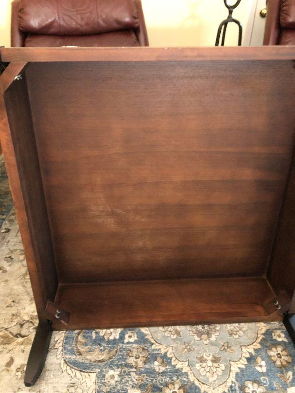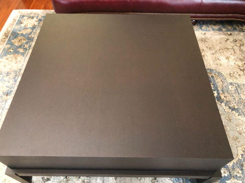 Large square wood coffee table. Please refer to photos for size and condition. Have fun and happy bidding.