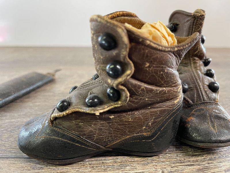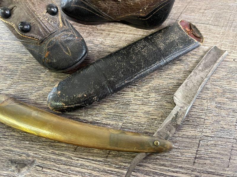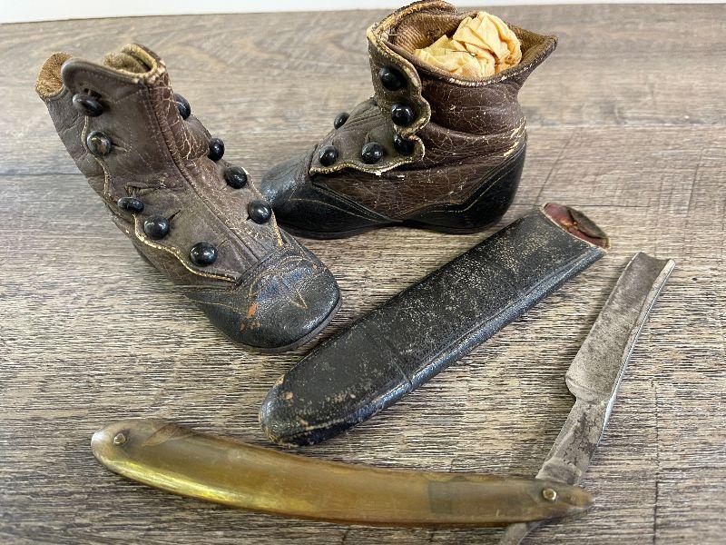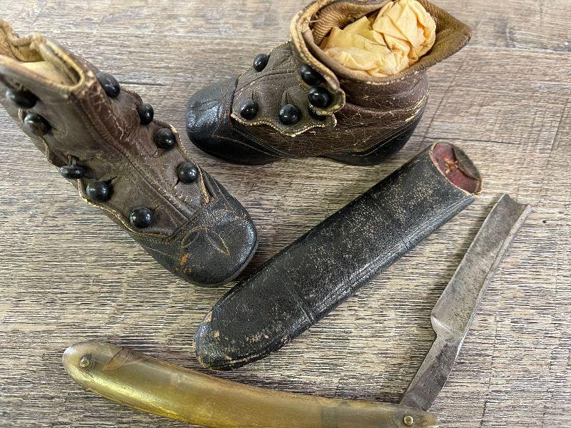 L126: Vintage Leather Baby Shoes and Vintage Straight Blade