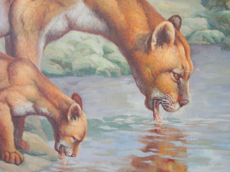L127 - Large Don Hammer Painting on Canvas - MOUNTAIN LIONS