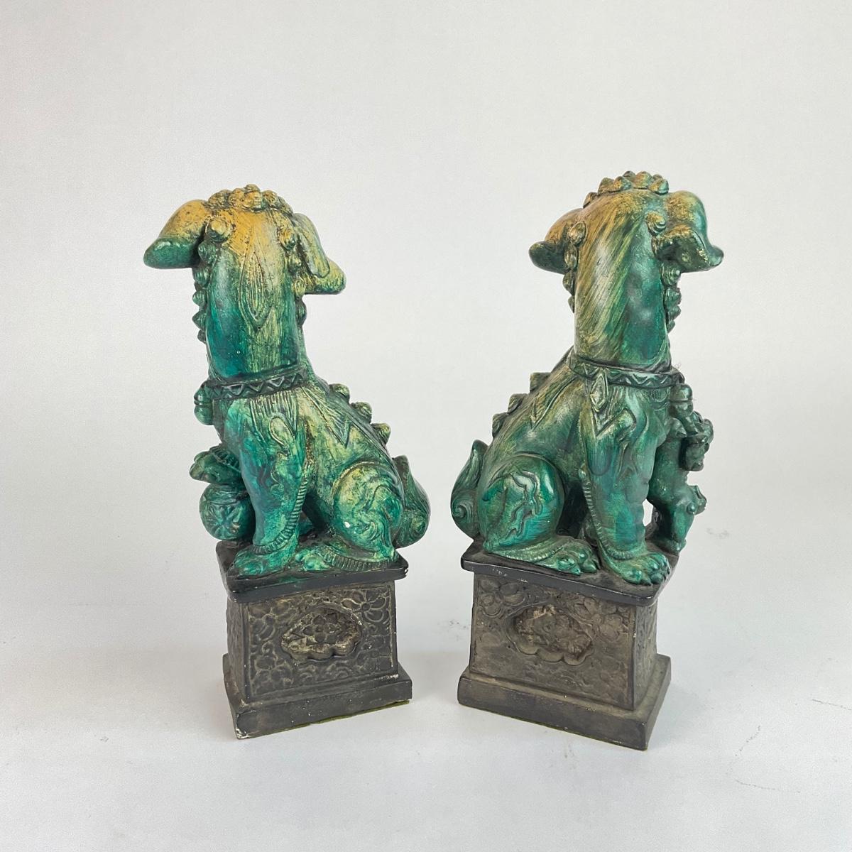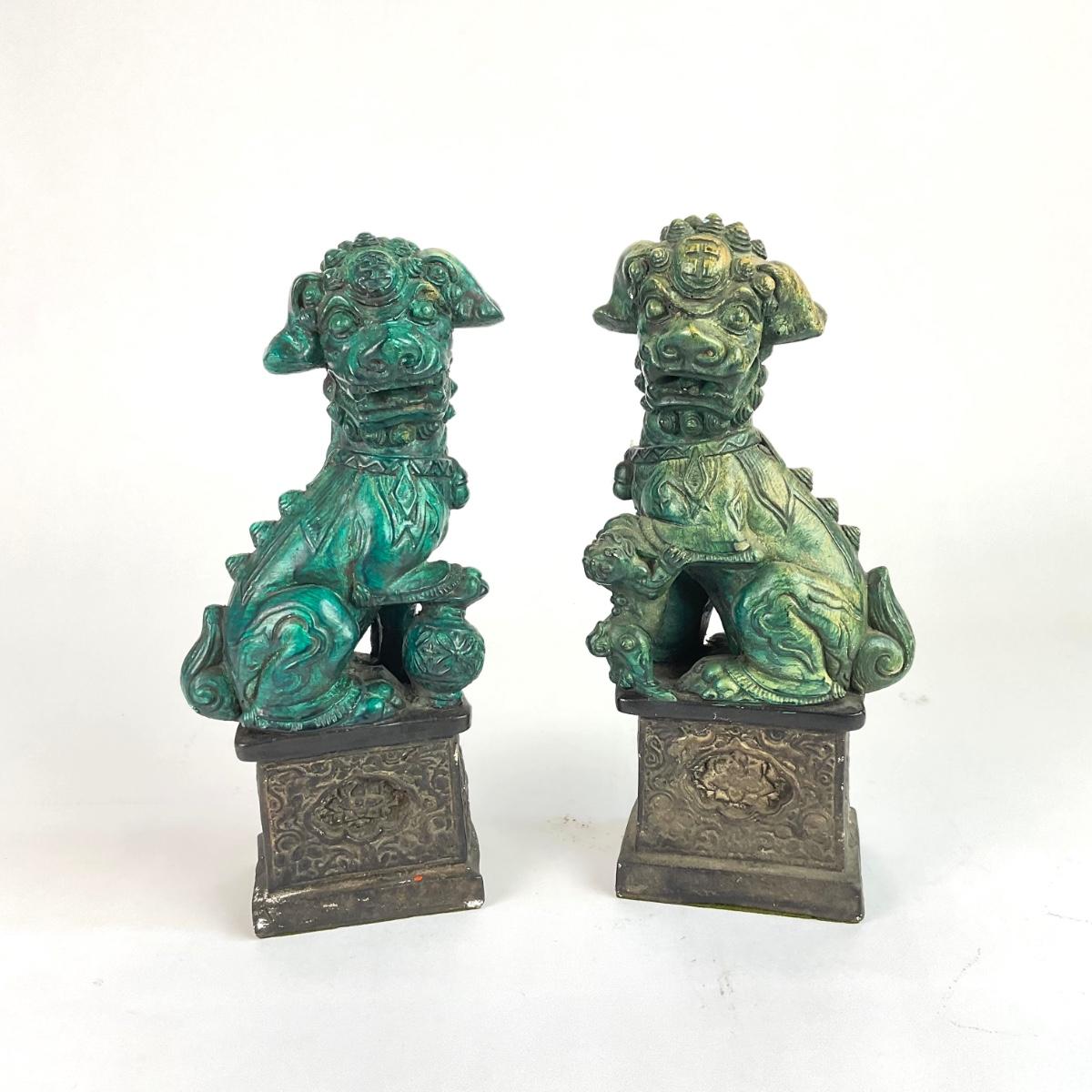 L131 Pair of Vintage Chinese Foo Dogs Chalk-ware