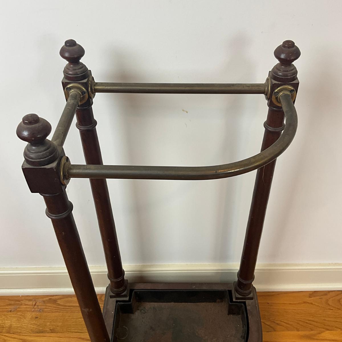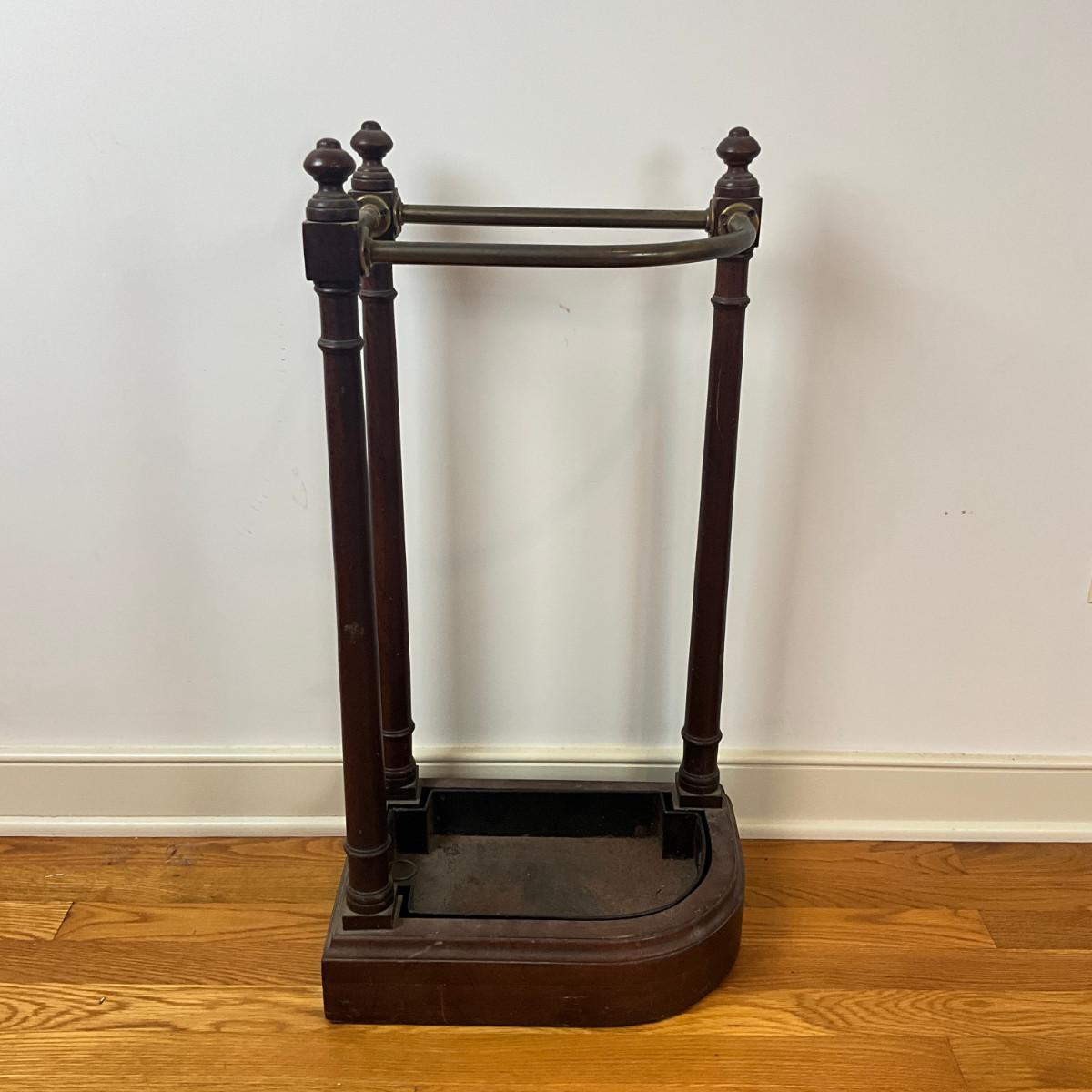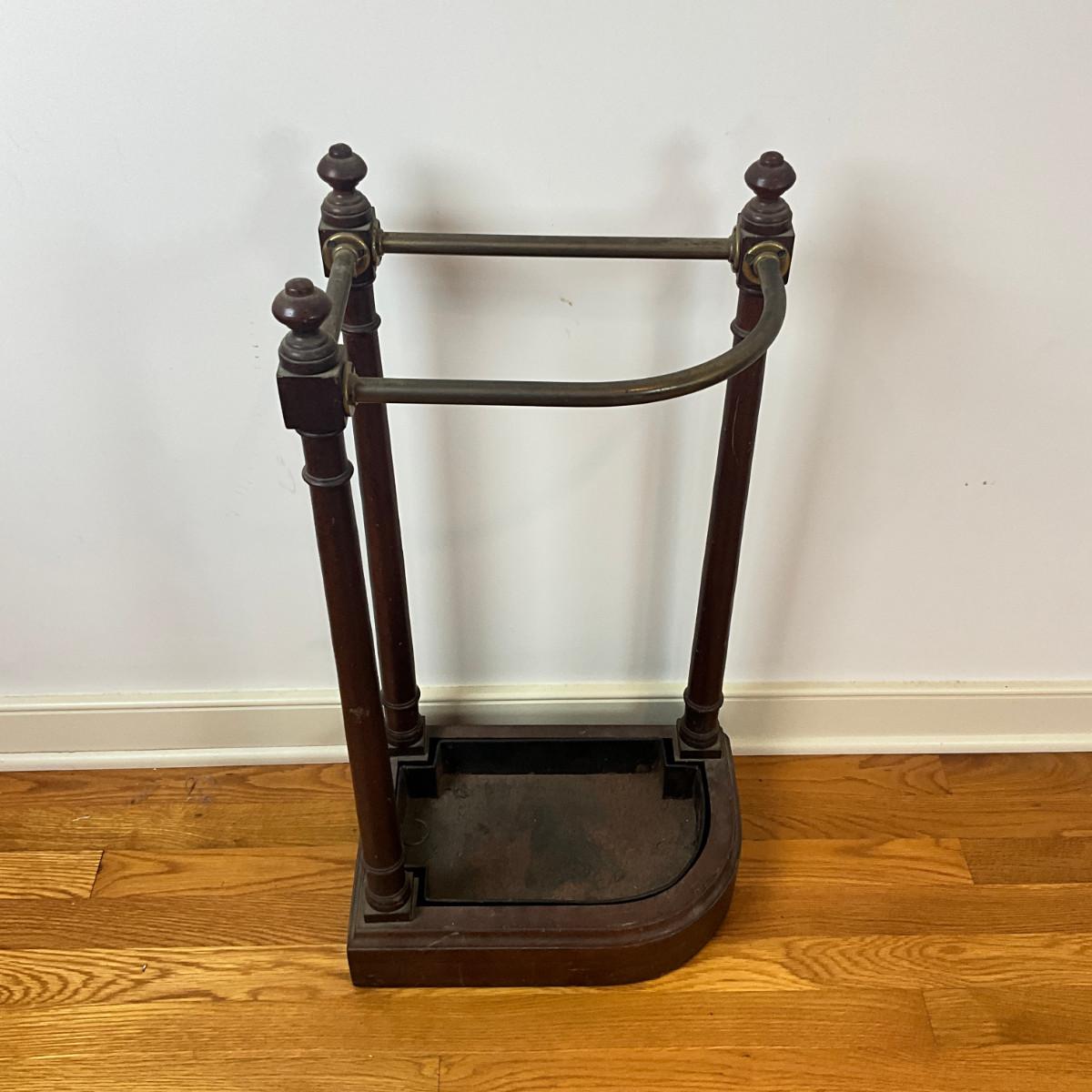 L135 Antique Brass & Cherry Wood Umbrella Stand