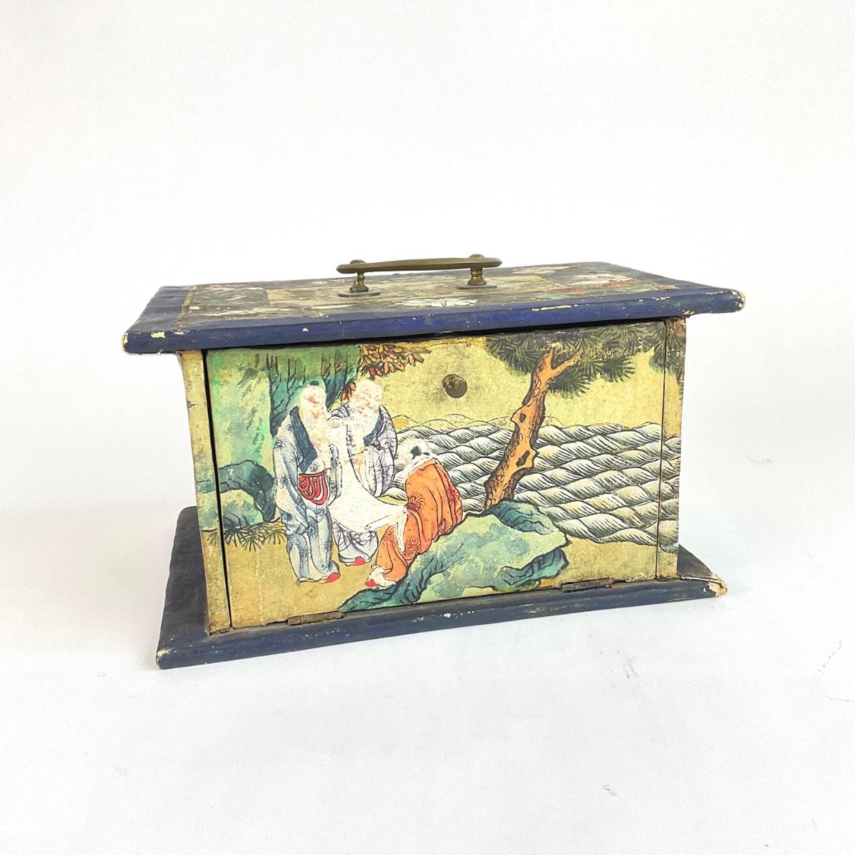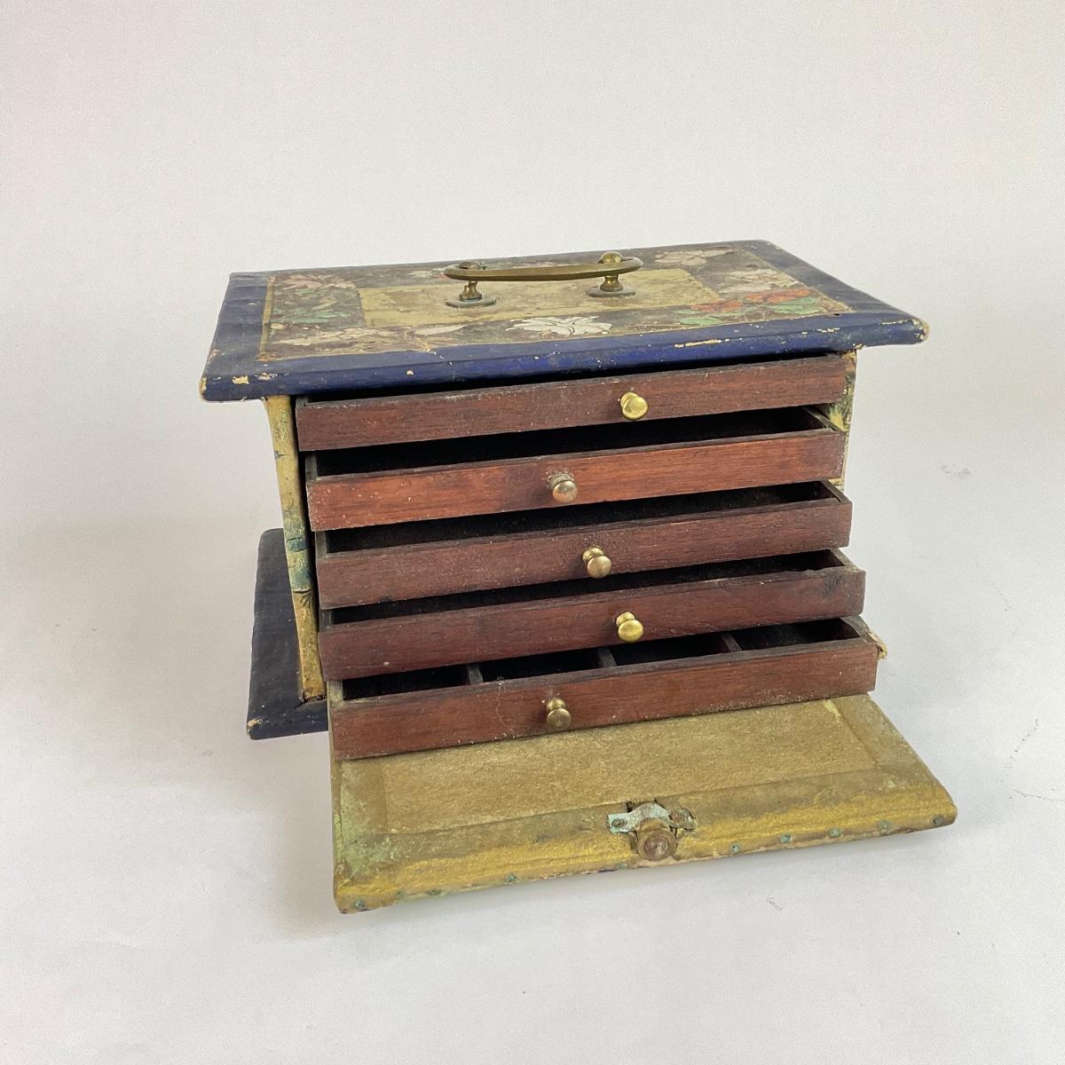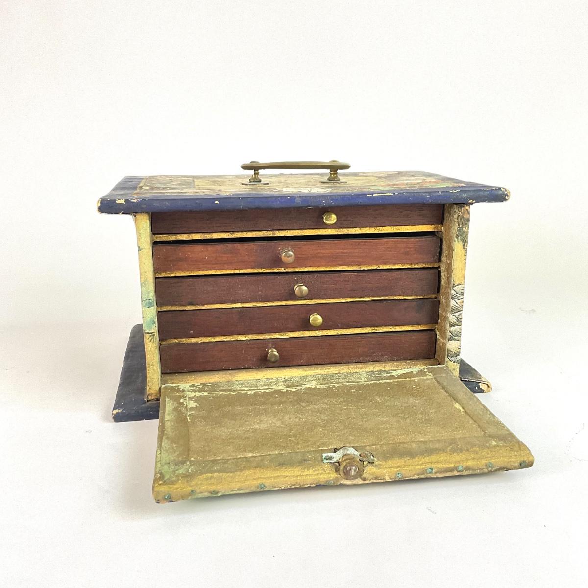 L136 Antique Oriental Mahjong Box with 5 Small Drawers