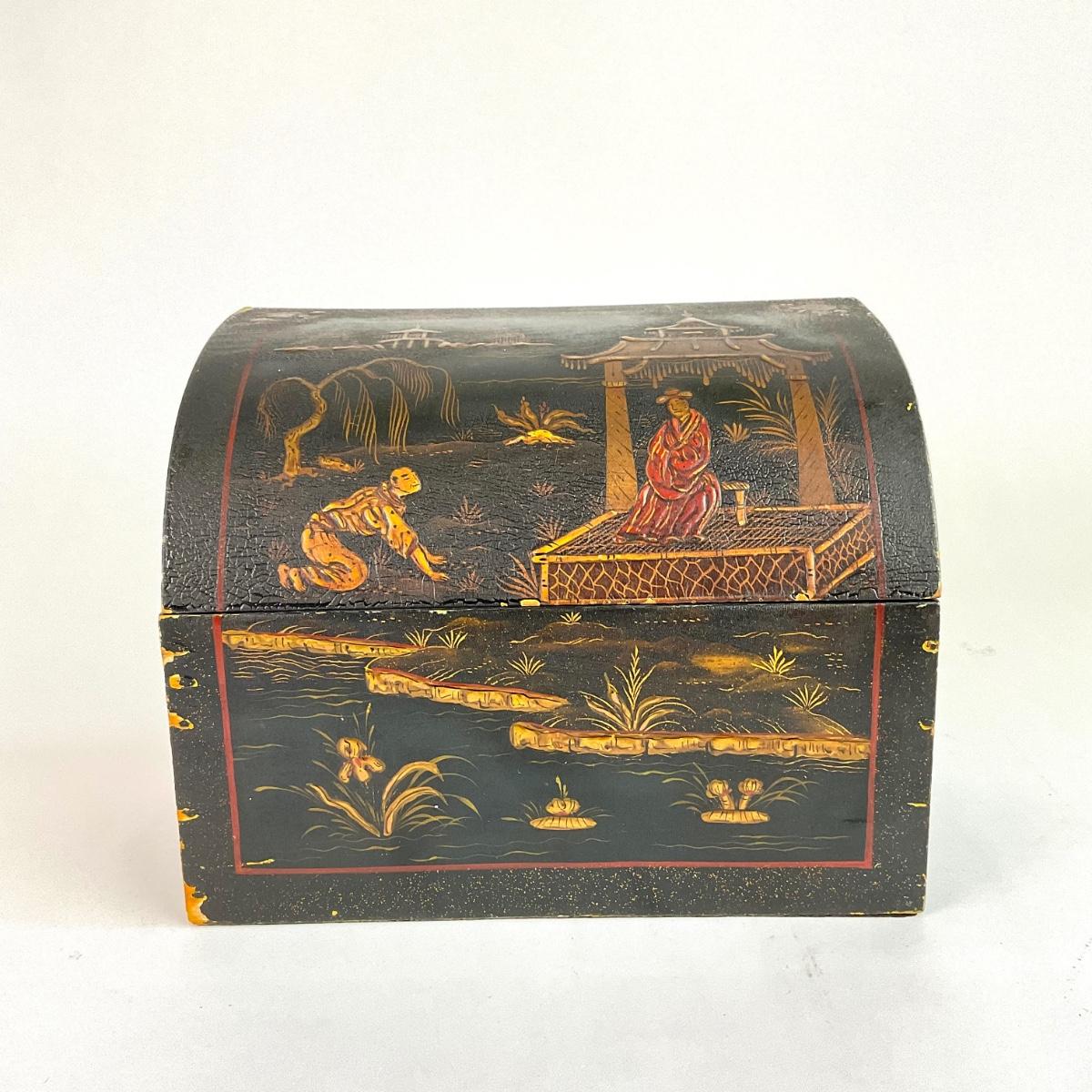 L137 Antique Hand-painted Round Top Oriental Desk Box
