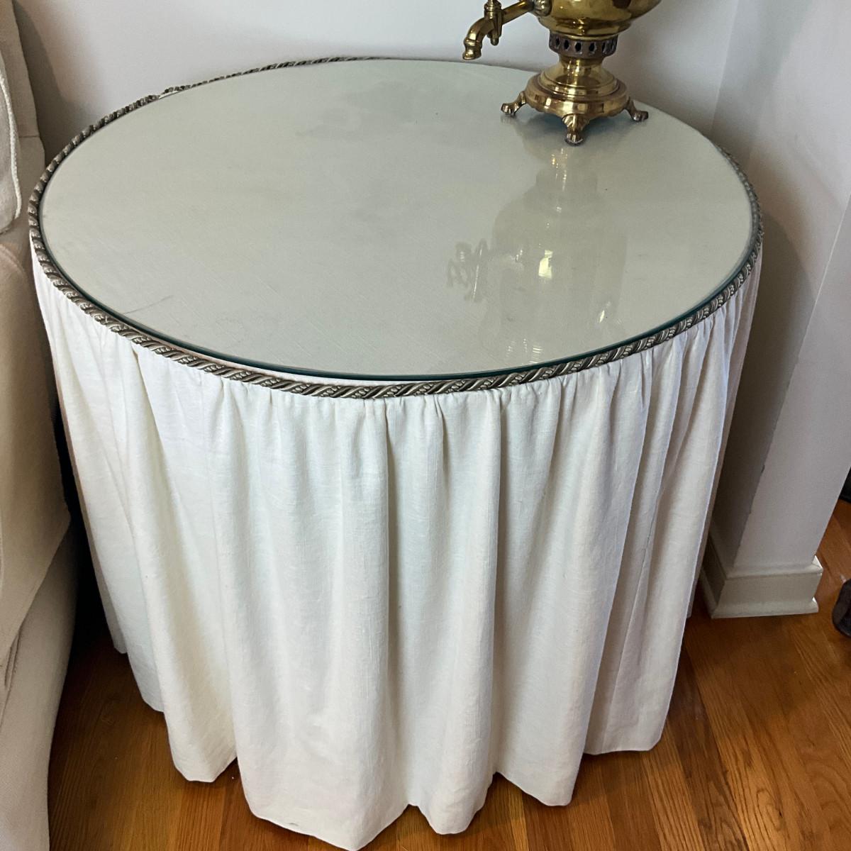L138 Pleated Skirted Side Table With Glass Top