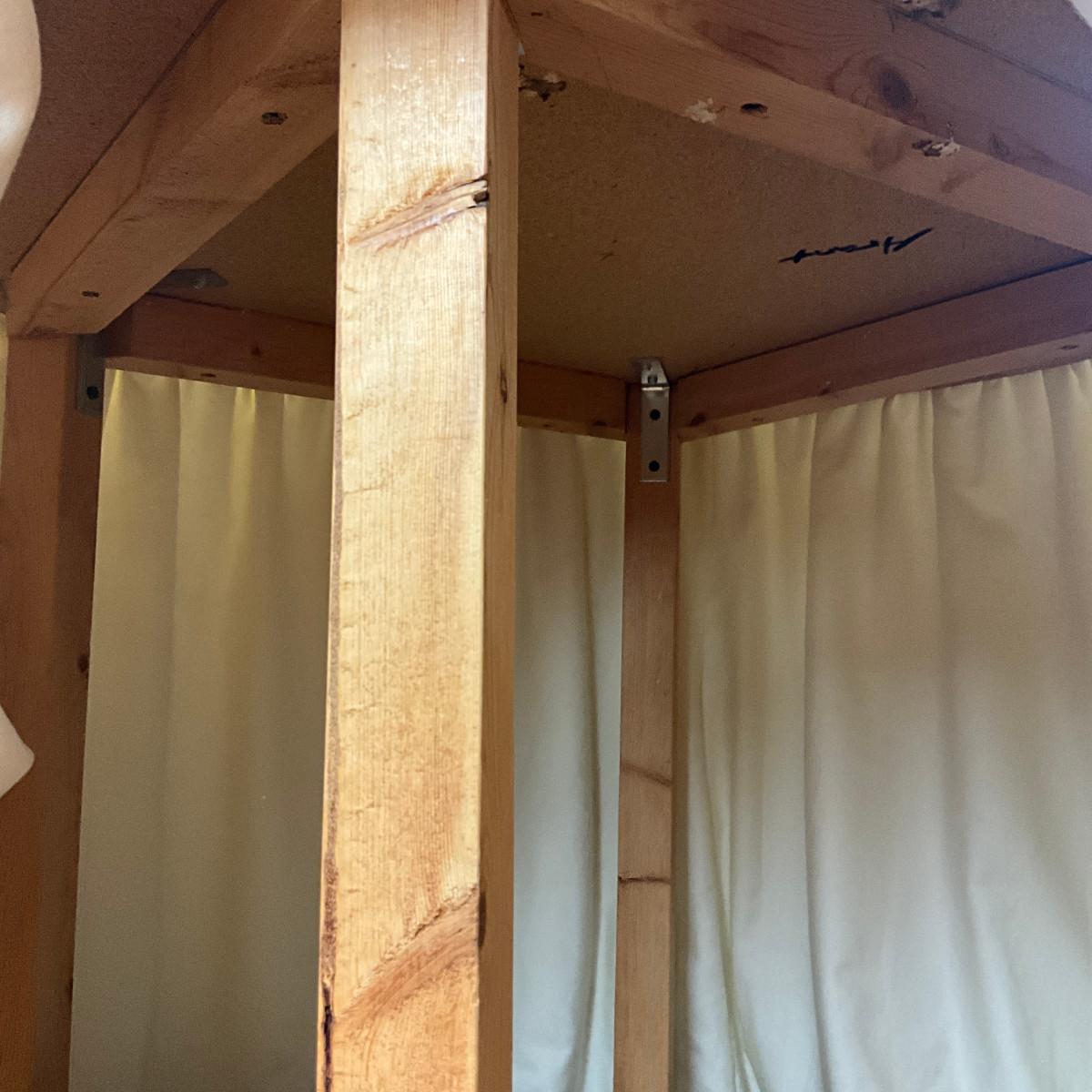 Beneath skirt is pine and press board top