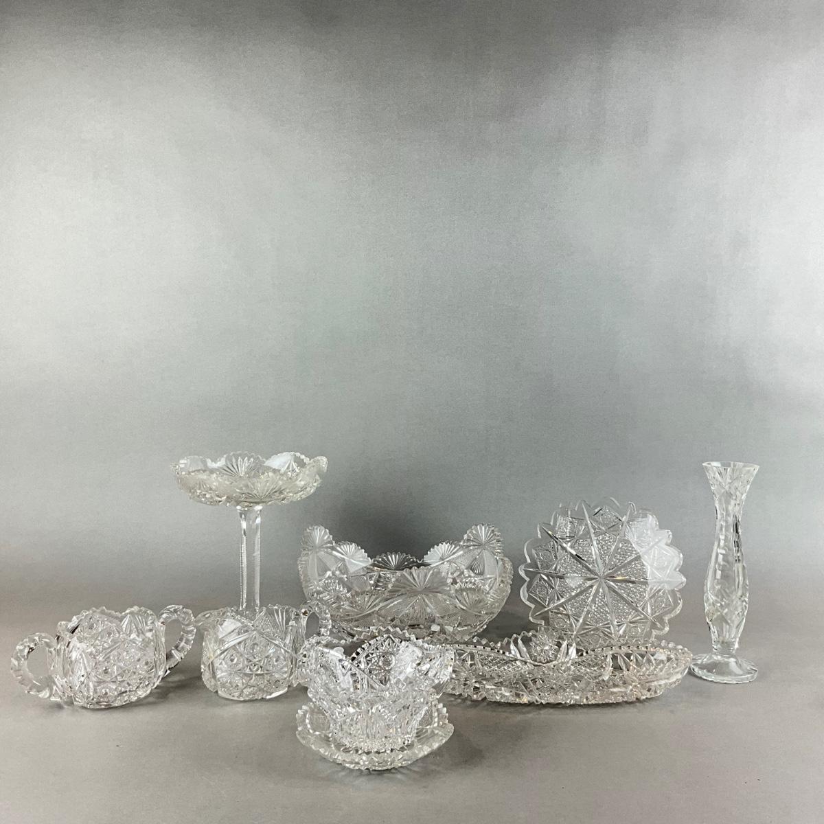 Bowls, pedestal dish, cream and sugar, serving plates and more