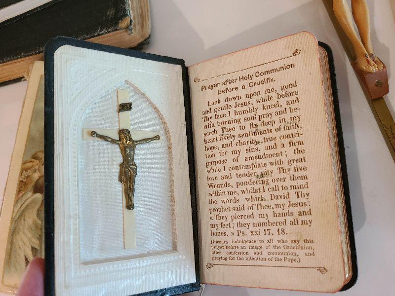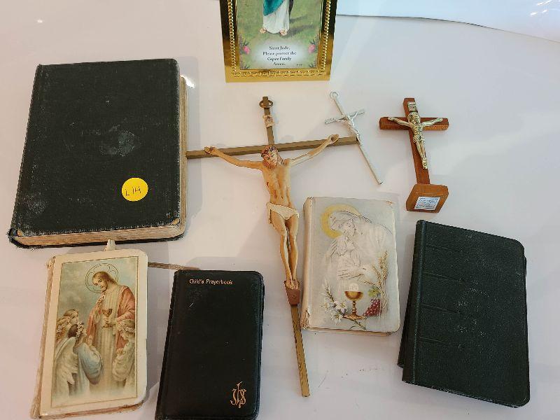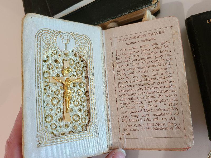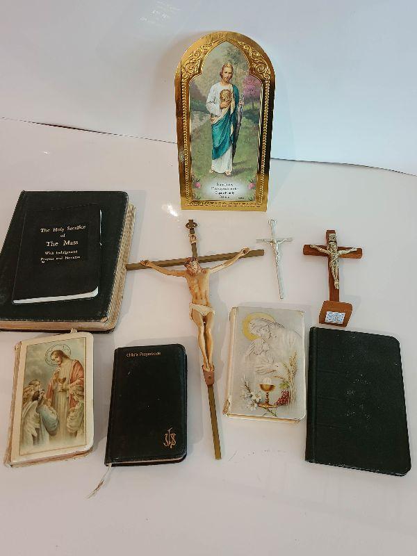These are older and show some age, very collectible lot of vintage missals and crucifixes. Please see pictures for contents of the lot, condition of the lot, and any measurements of the item. Thank you for looking and happy bidding!
