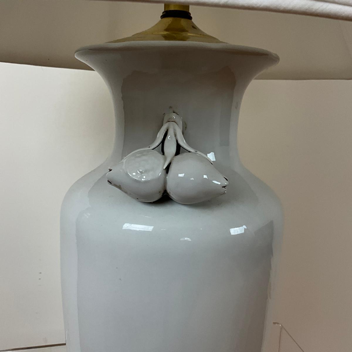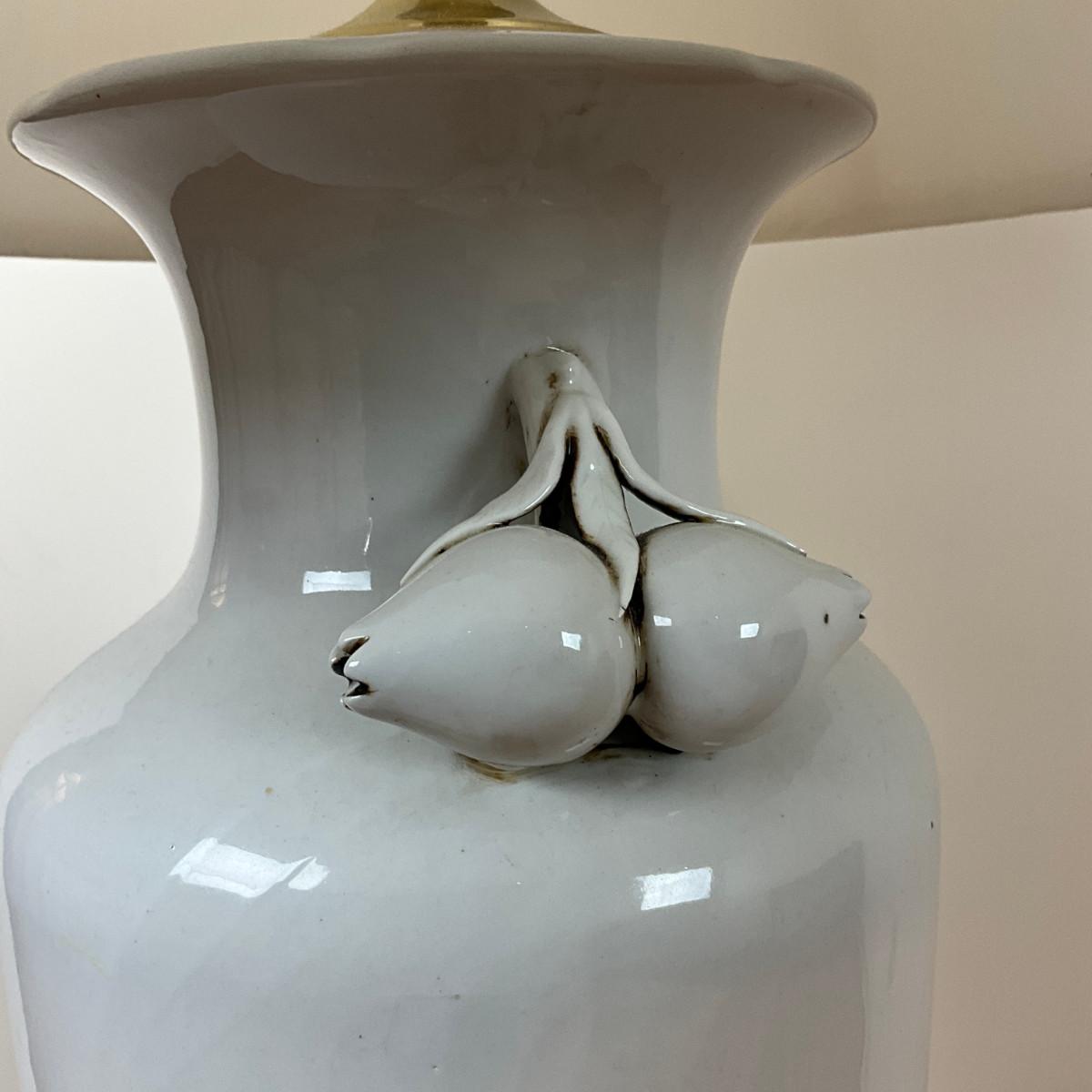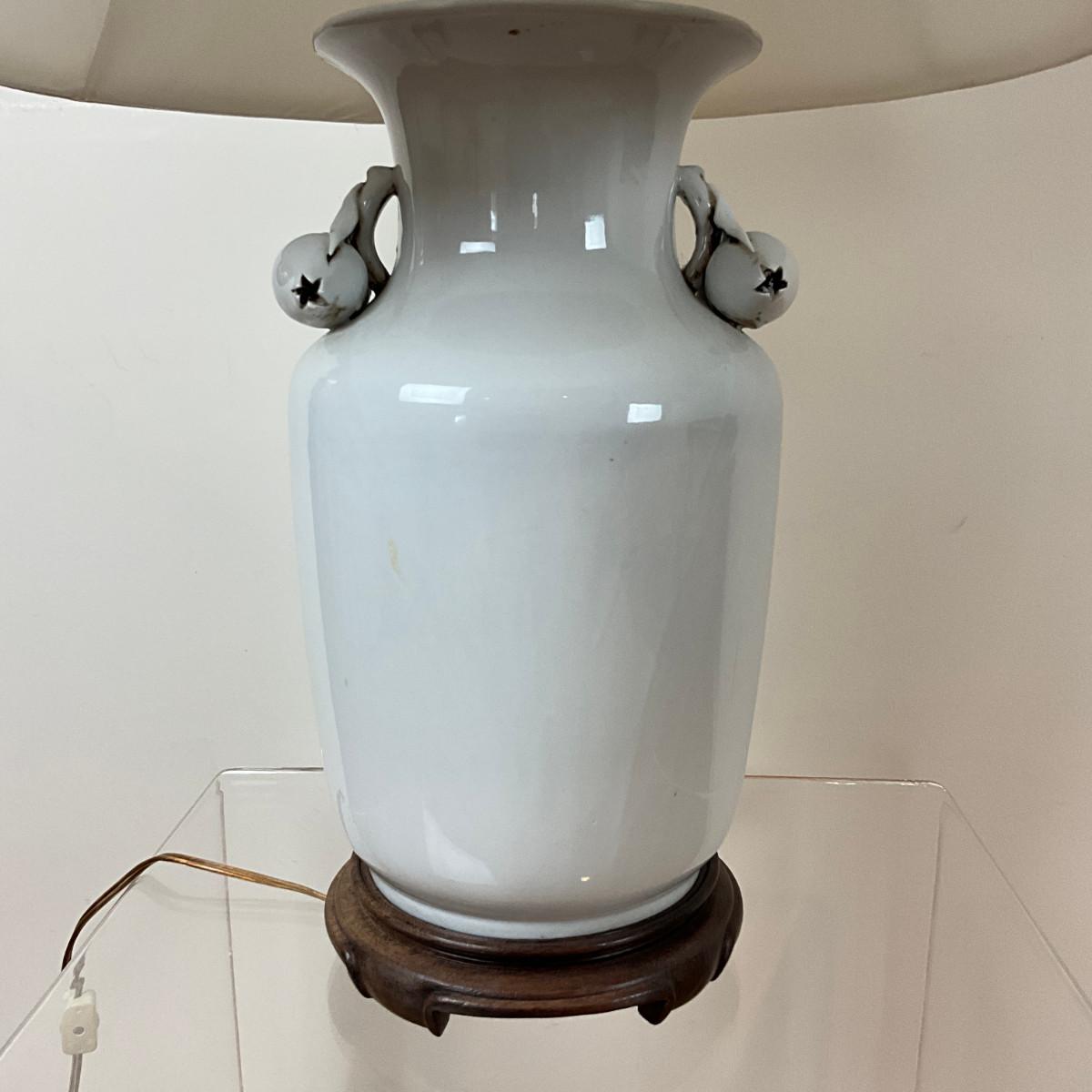 L140 Antique Blanc De China Porcelain Vase Lamp With Pomegranate Fruit Handles