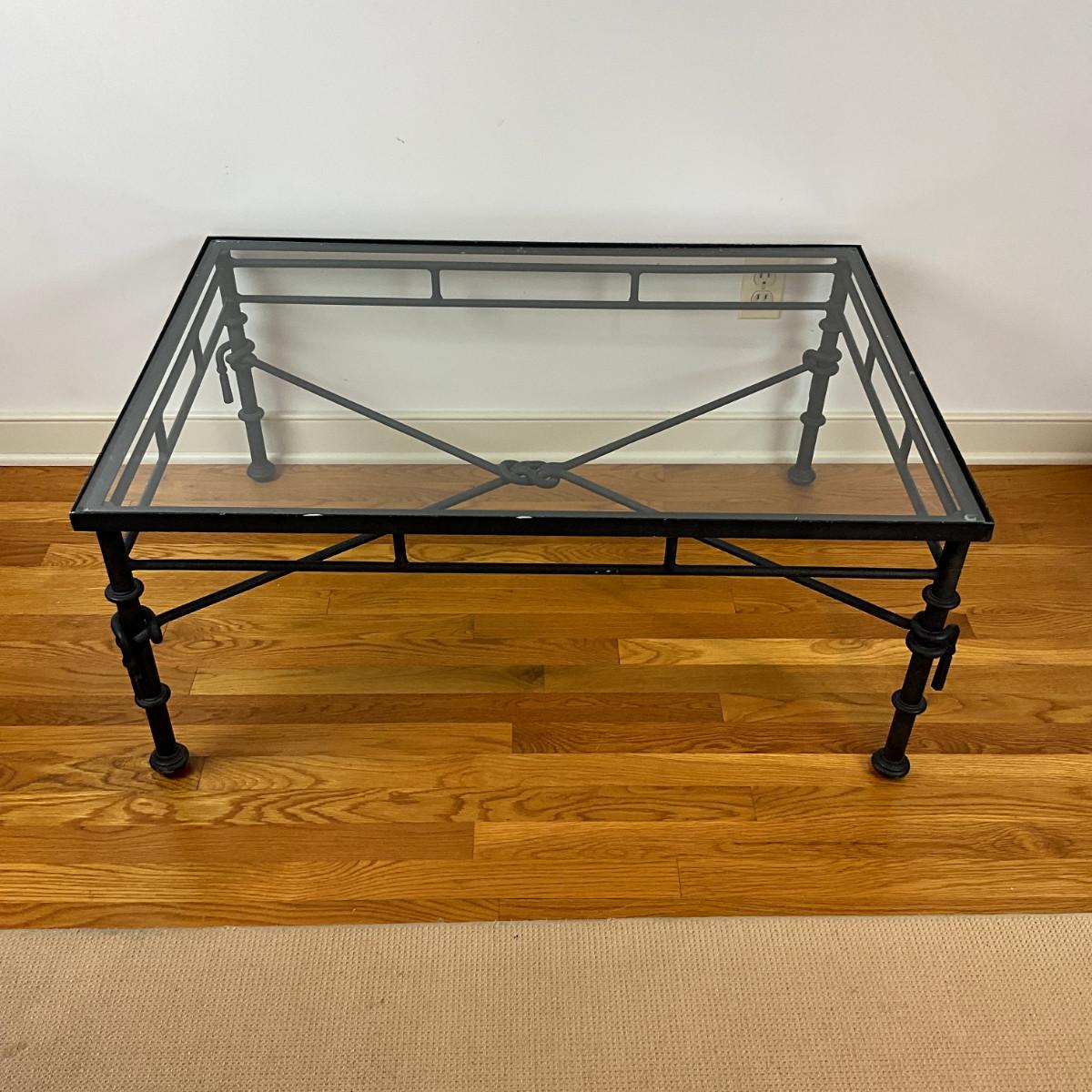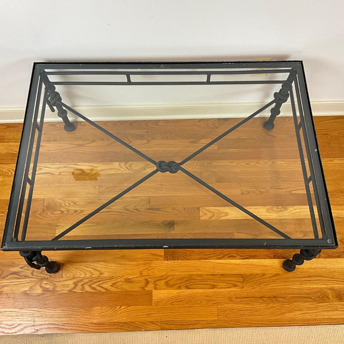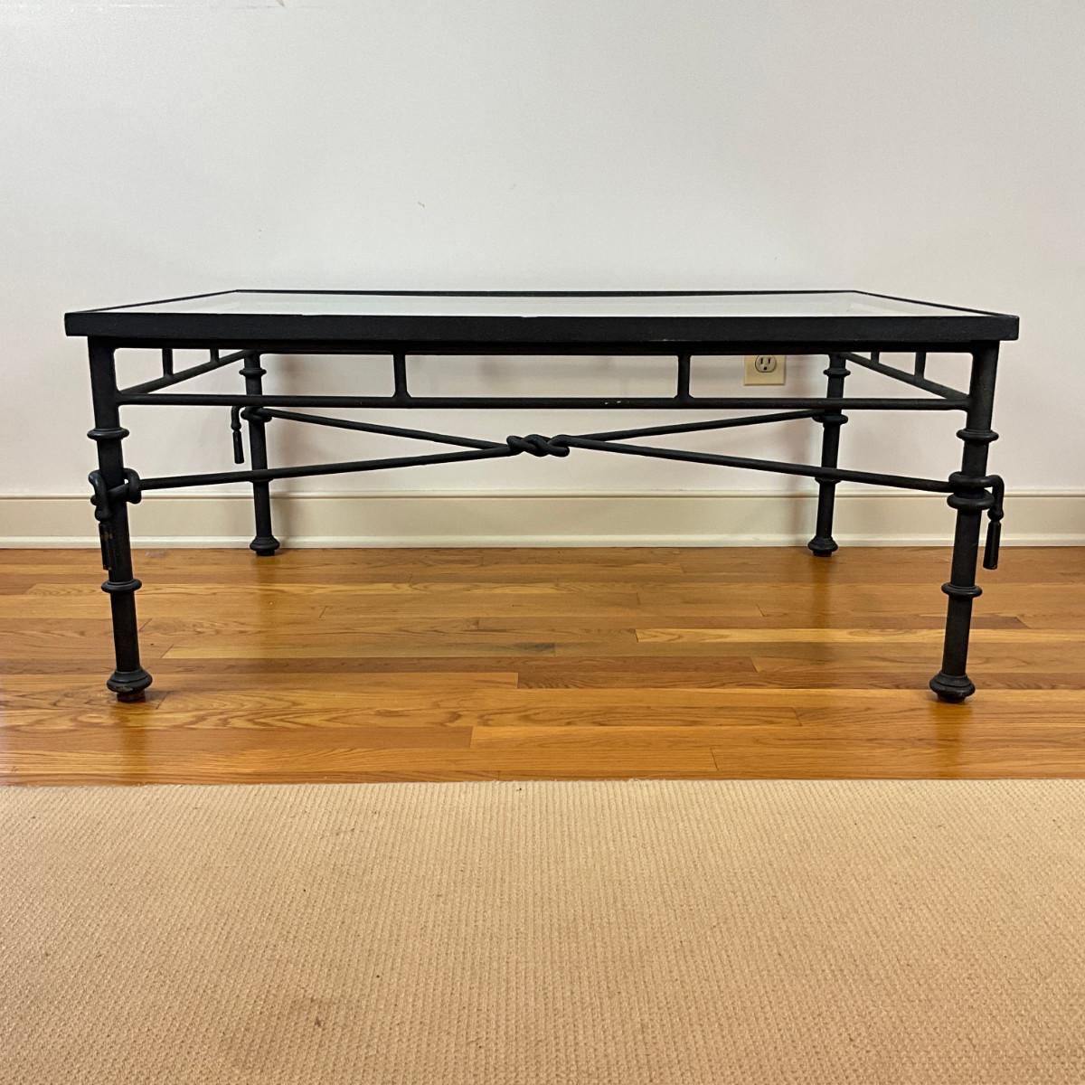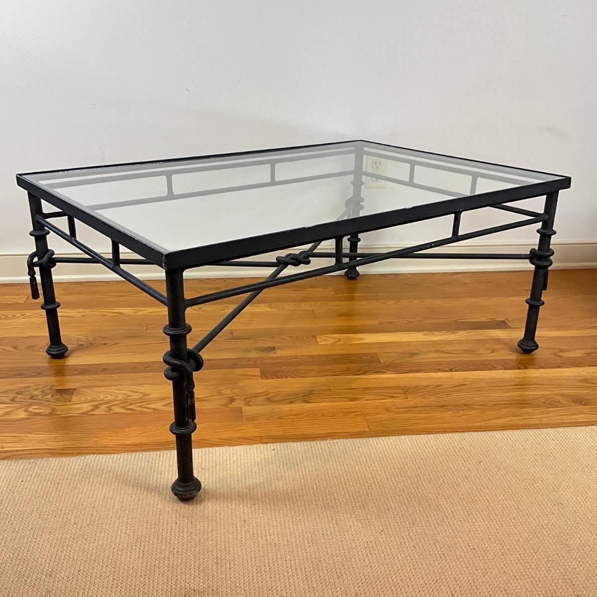 L141 Giacomett Inspired Modern Rustic Sculpted Rectangle Iron Glass Top Coffee Table