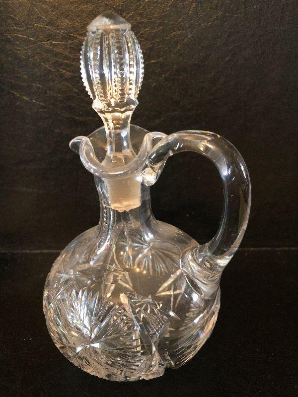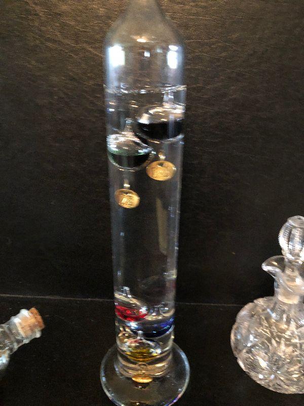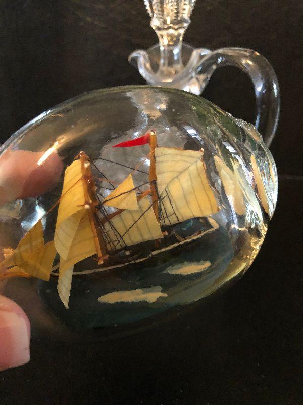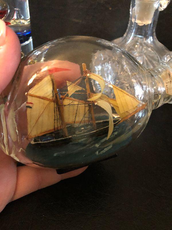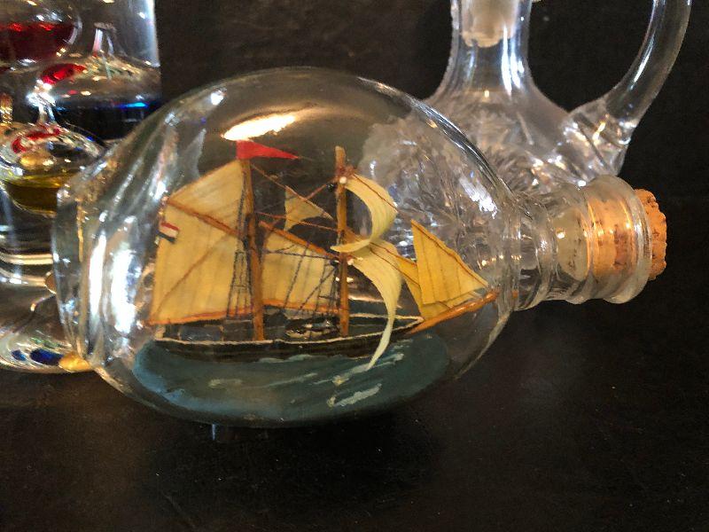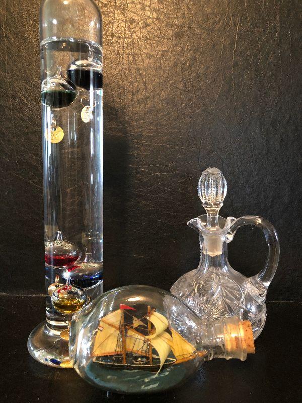 Glass baromete, ship in bottle and lot of lead crystal cruets