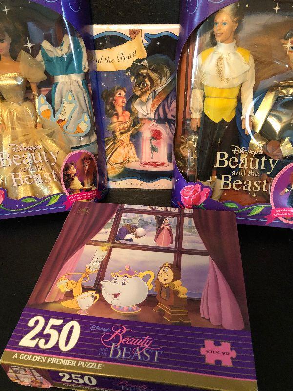 L145: Beauty and the Beast Disney Classic Dolls New in Box, puzzle and more