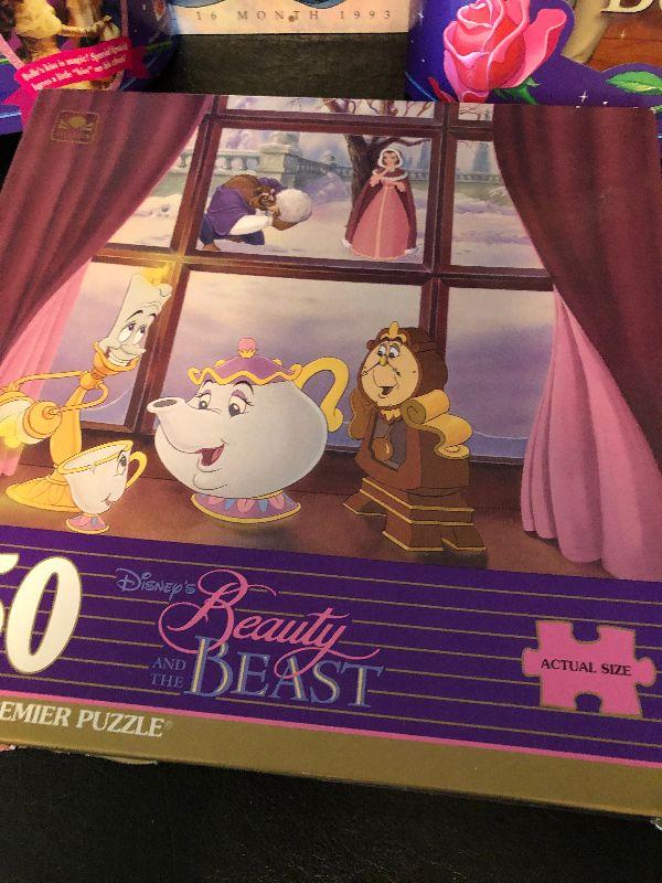 Nice lot of Beauty and the Beast items. The dolls and calendar are new, but the puzzle has been opened. Please see all pictures for contents of the lot, condition of the items in the lot, and measurements if taken. Thank you for looking and have fun bidding.