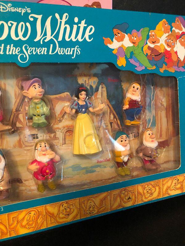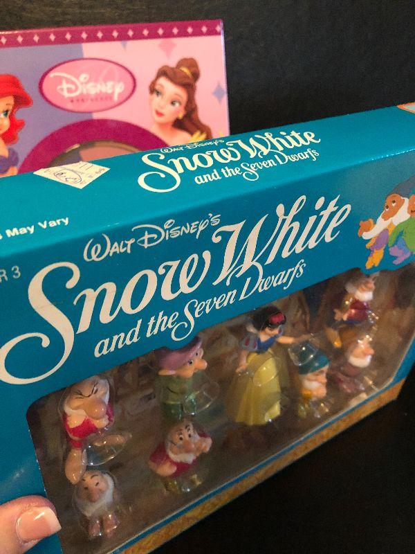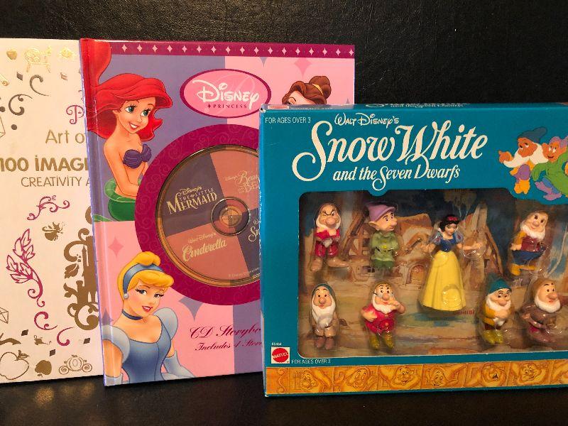 This is a nice lot for a princess fan. Unopened Snow White Figurines, a Disney Princess Storybook with CDs, and coloring book. A few of the pages in the coloring book have been colored. Please see all pictures for contents of the lot, condition of the items in the lot, and measurements if taken. Thank you for looking and have fun bidding.