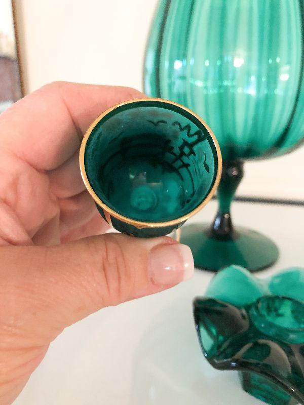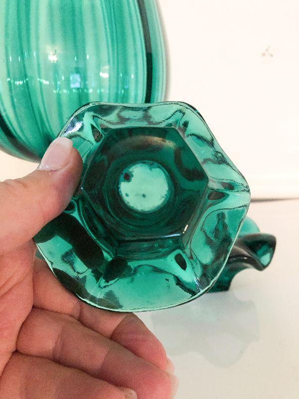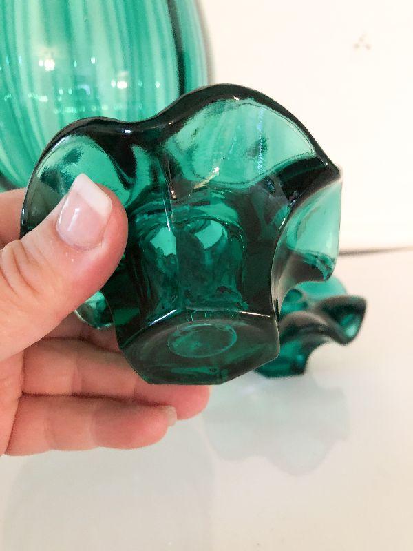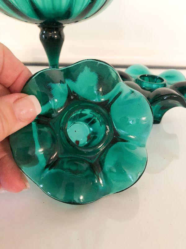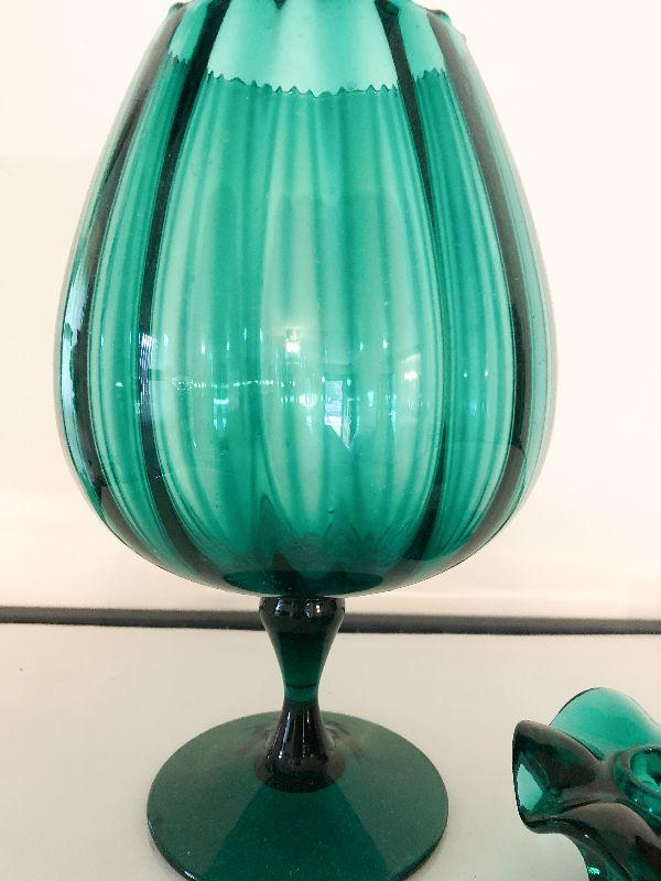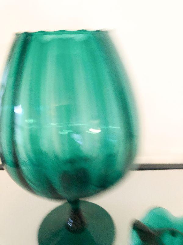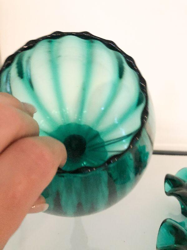 Decorative lot of deep green glass that would look great in a MCM house. Please see all pictures for exact contents of the lot, condition of the items, and if measurements if taken. Thank you for looking and have fun bidding.