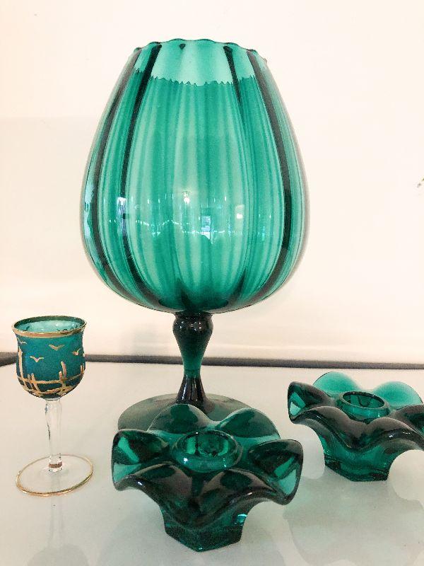 L16: Evergreen Candlestick Holders and Vase MCM design