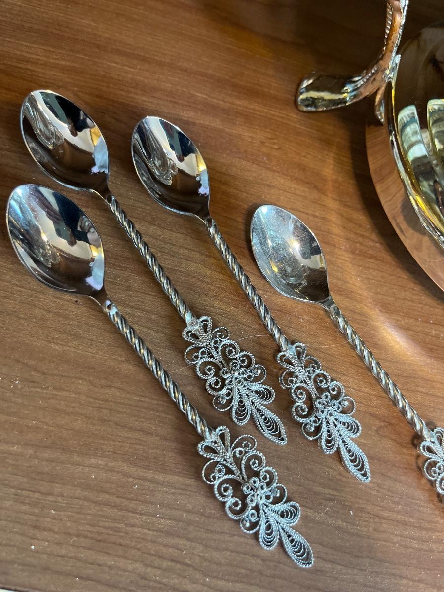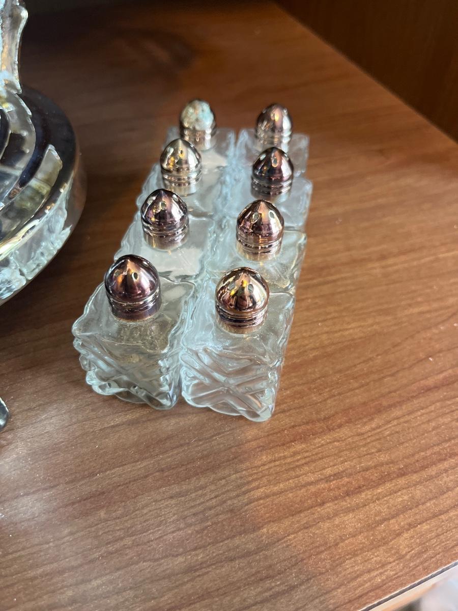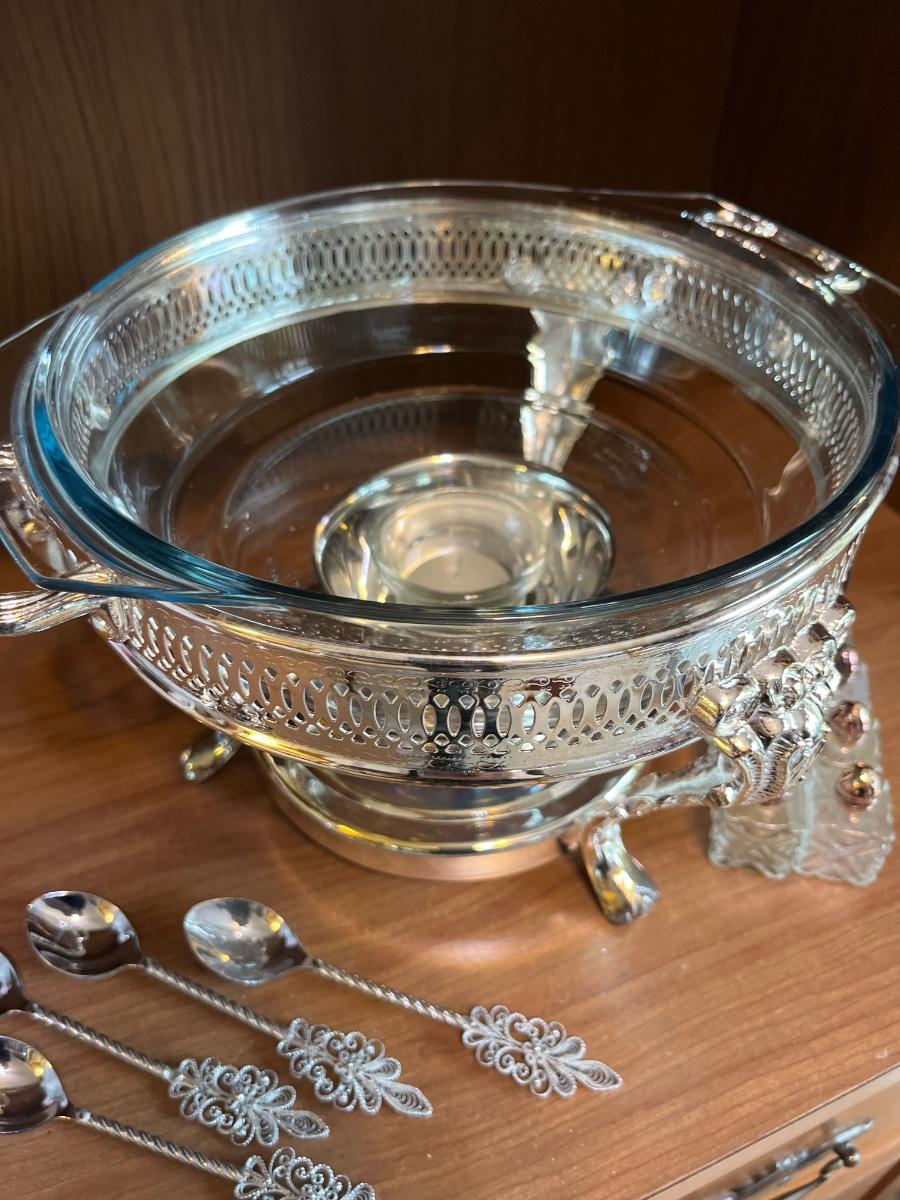 L16- Silver chafing dish (glass insert), spoons, S&P shakers