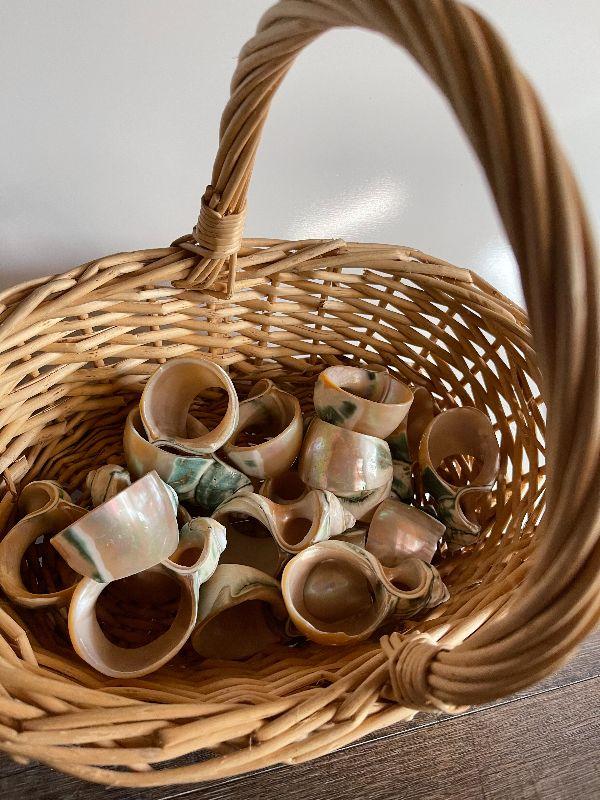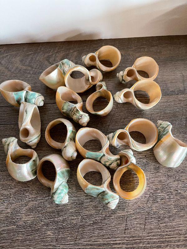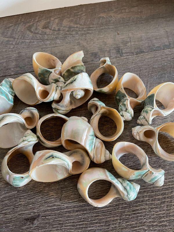 Set of 17 shell Napkin rings. Please see pictures for condition and measurements if taken. All items are sold as found and if furniture, you will need to be able to move yourself. Thank you for looking and have fun bidding! As always, thank you for being a Treasure Me Hunter!