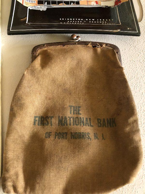 L176: Vintage New Jersey Bank Bag, Milk Holder, Plate and More